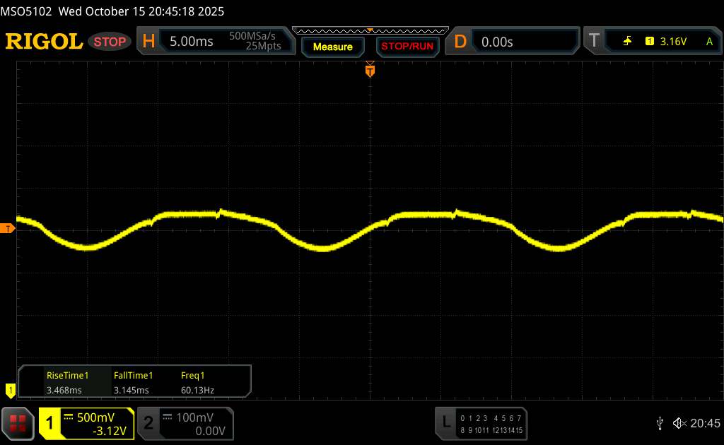 Durante os testes, observamos uma oscilação da tela em uma frequência de 60 Hz.