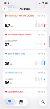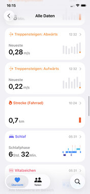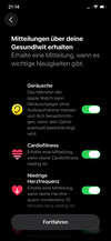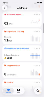 Todos os dados de saúde são consolidados no aplicativo Health do Apple, enquanto o aplicativo Fitness separado concentra-se nos exercícios e no acompanhamento das atividades diárias. Um recurso de destaque do Apple Watch é sua capacidade de monitorar os níveis de ruído ambiental - ele até envia notificações push quando o som ao seu redor se torna potencialmente prejudicial ao longo do tempo.
