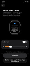 A configuração e a personalização são feitas por meio do aplicativo Watch, que inclui configurações para notificações, preferências de exibição, gestos e muito mais. O Apple também oferece gratuitamente uma ampla variedade de mostradores de relógio. Os dados de saúde são rastreados e gerenciados por meio do aplicativo Health. Em nosso teste, o smartwatch foi executado no watchOS 26.0.2.
