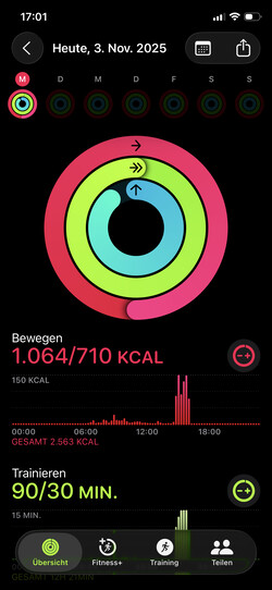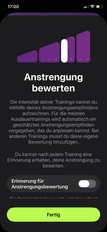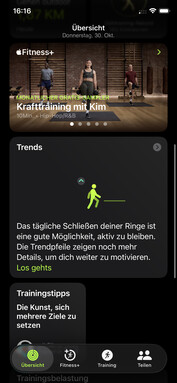 Após cada sessão, o software fornece uma carga de treinamento sugerida e exibe a intensidade de treinamento acumulada ao longo do mês. Nos testes, o Watch 11 detectou e registrou os treinos de forma confiável e automática.