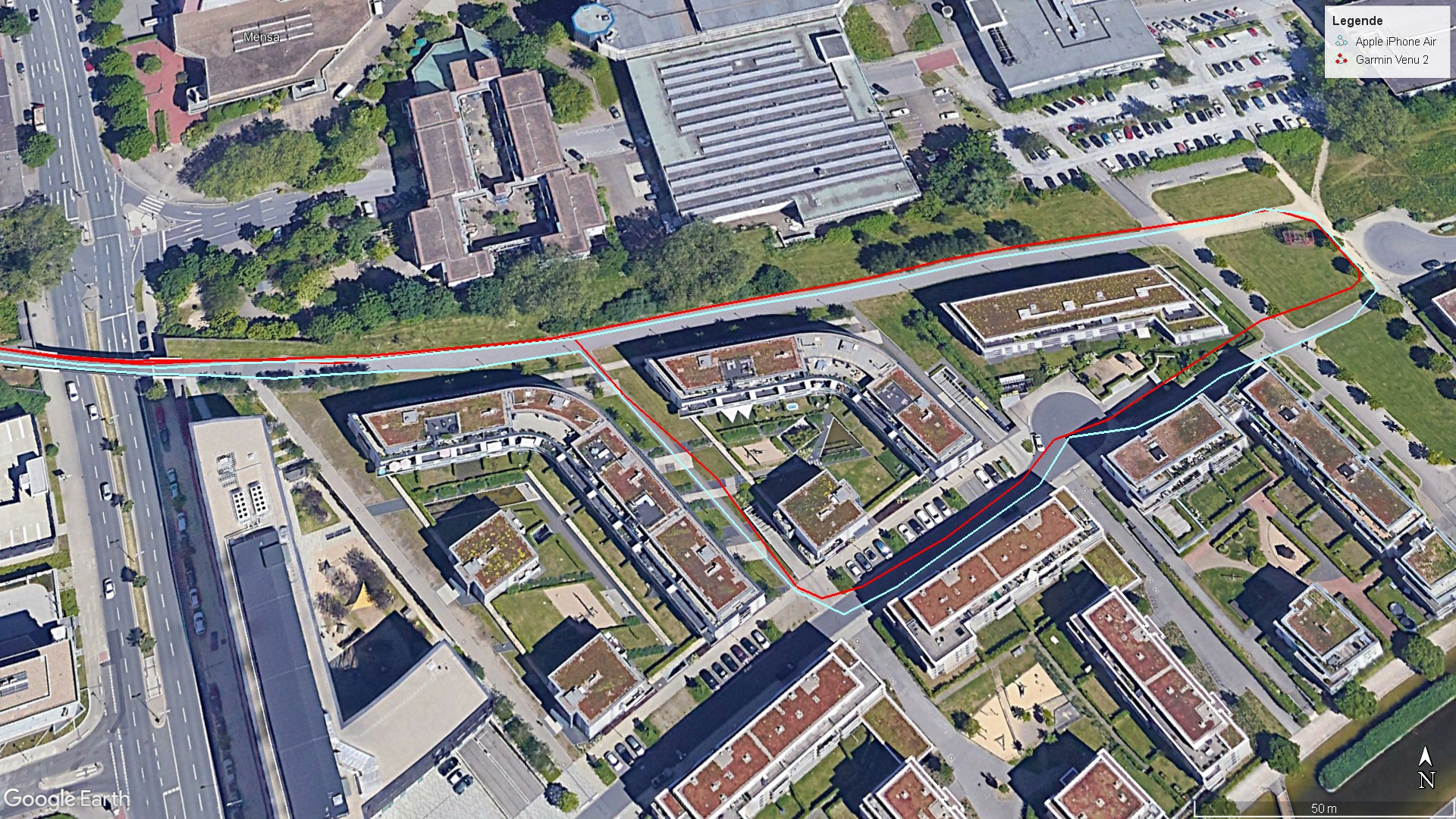 O iPhone Air determina sua posição usando GNSS de banda dupla com todas as principais redes de satélite. O rastreamento da localização é bastante rápido, mas em testes reais em um passeio de bicicleta, ficou evidente que o smartphone recuperava sua localização em intervalos mais longos, o que significava que o rastreamento da rota nem sempre era preciso. No entanto, ele ainda é perfeitamente adequado para fins de navegação.