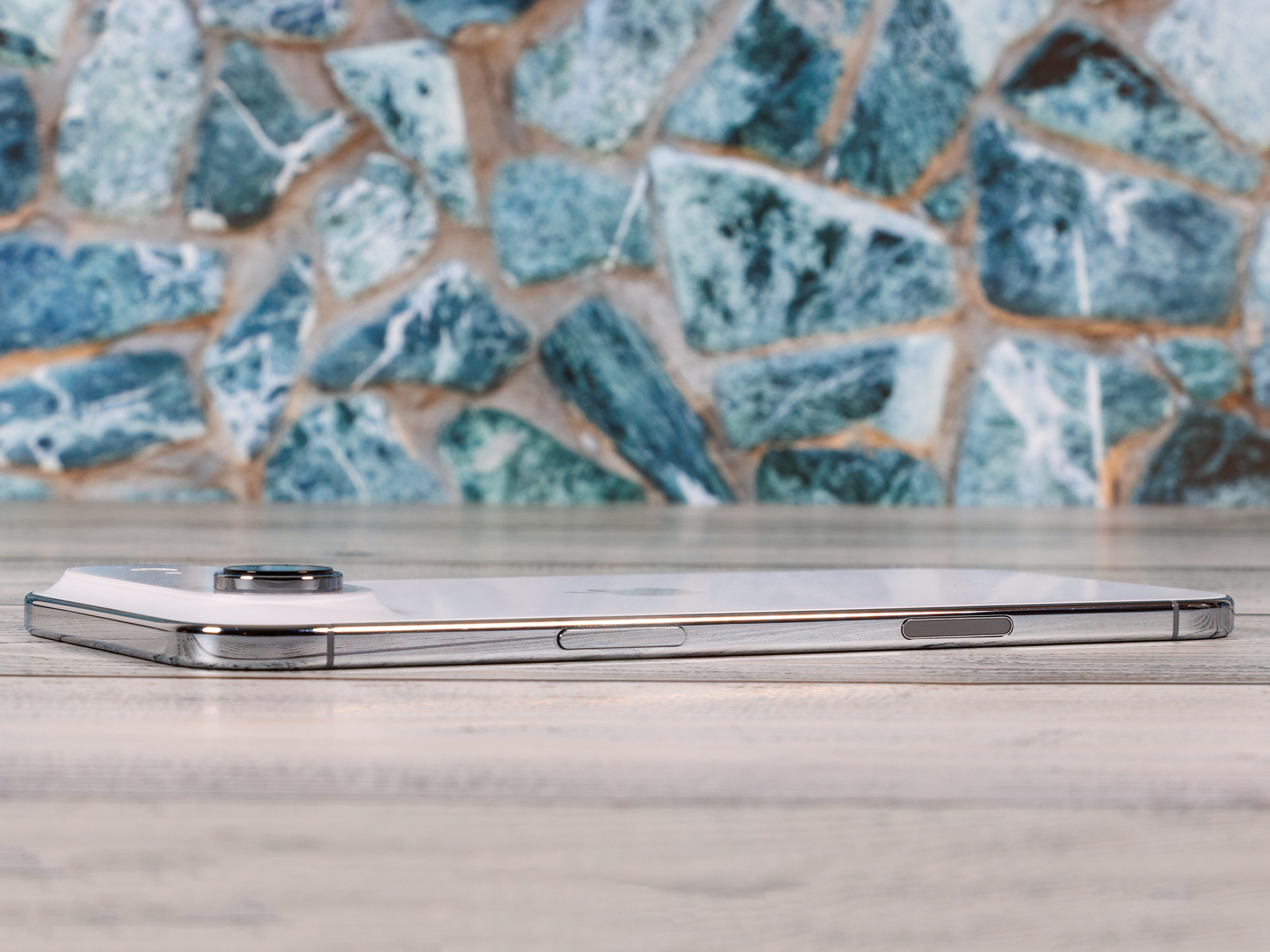 O iPhone Air é definido por seu design fino, o que o torna o smartphone mais fino da Apple até o momento. Ele tem uma espessura nominal de 5,64 mm, e isso é algo que podemos confirmar com nossas medições. Acrescente a isso uma saliência substancial (+2,96 mm) e a câmera montada na parte superior (+2,7 mm adicionais), resultando em uma espessura de 11,3 mm em seu ponto mais espesso. Entretanto, com 165 g, o iPhone Air é comparativamente leve.