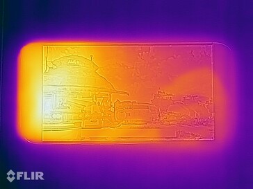 (±) A temperatura máxima no lado superior é 41.5 °C / 107 F, em comparação com a média de 35.2 °C / 95 F , variando de 21.9 a 247 °C para a classe Smartphone.