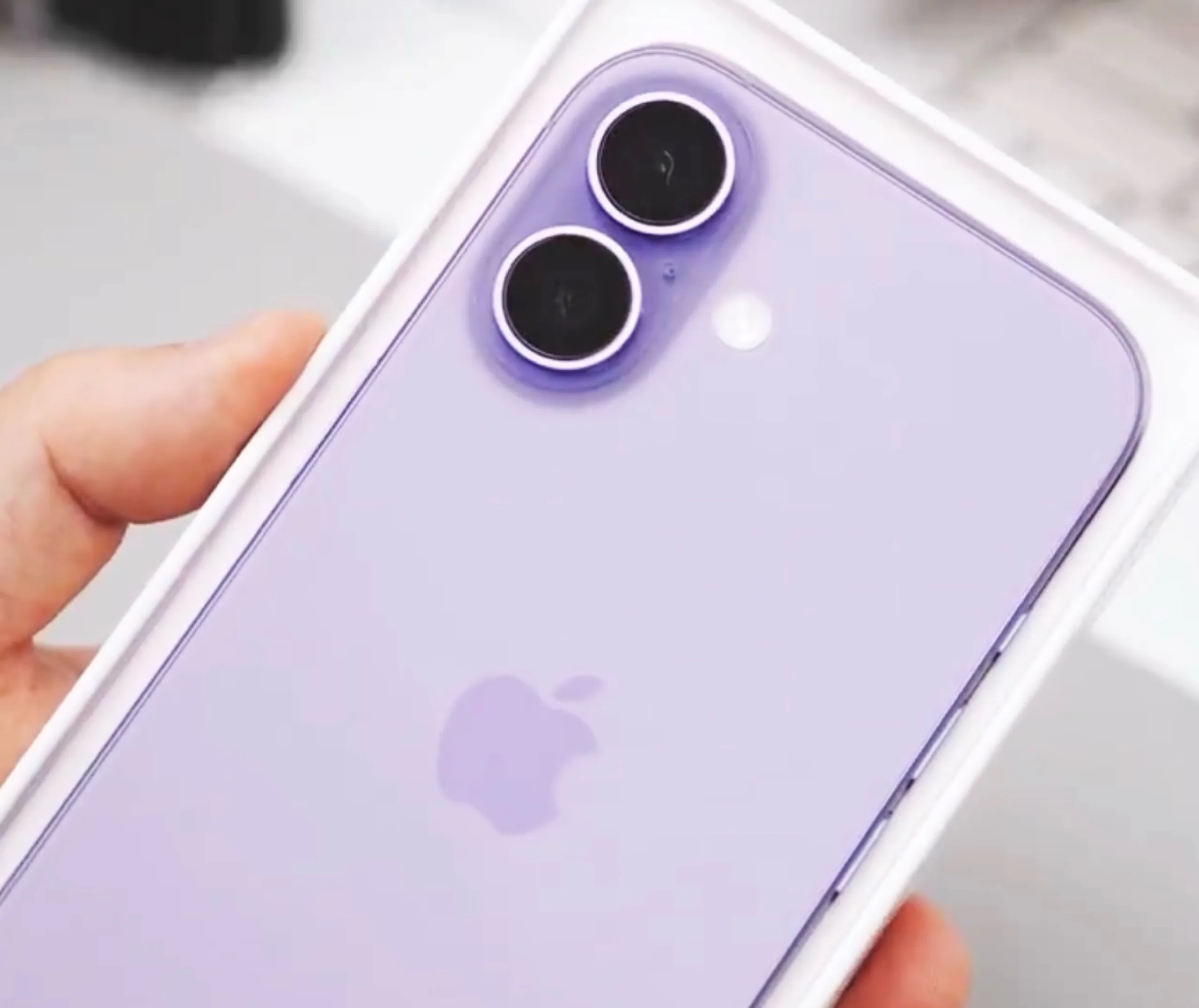 As cores mostradas são violeta (Pantone 530 U) e verde (Pantone 2282 U), embora o iPhone 17 também deva estar disponível em branco, preto, cinza escuro e azul claro. Em comparação com o iPhone 16os novos tons são visivelmente mais brilhantes, mais quentes e um pouco menos saturados. Os tons mais escuros estão reservados para os modelos Pro deste ano, especificamente o azul escuro e o laranja intenso.