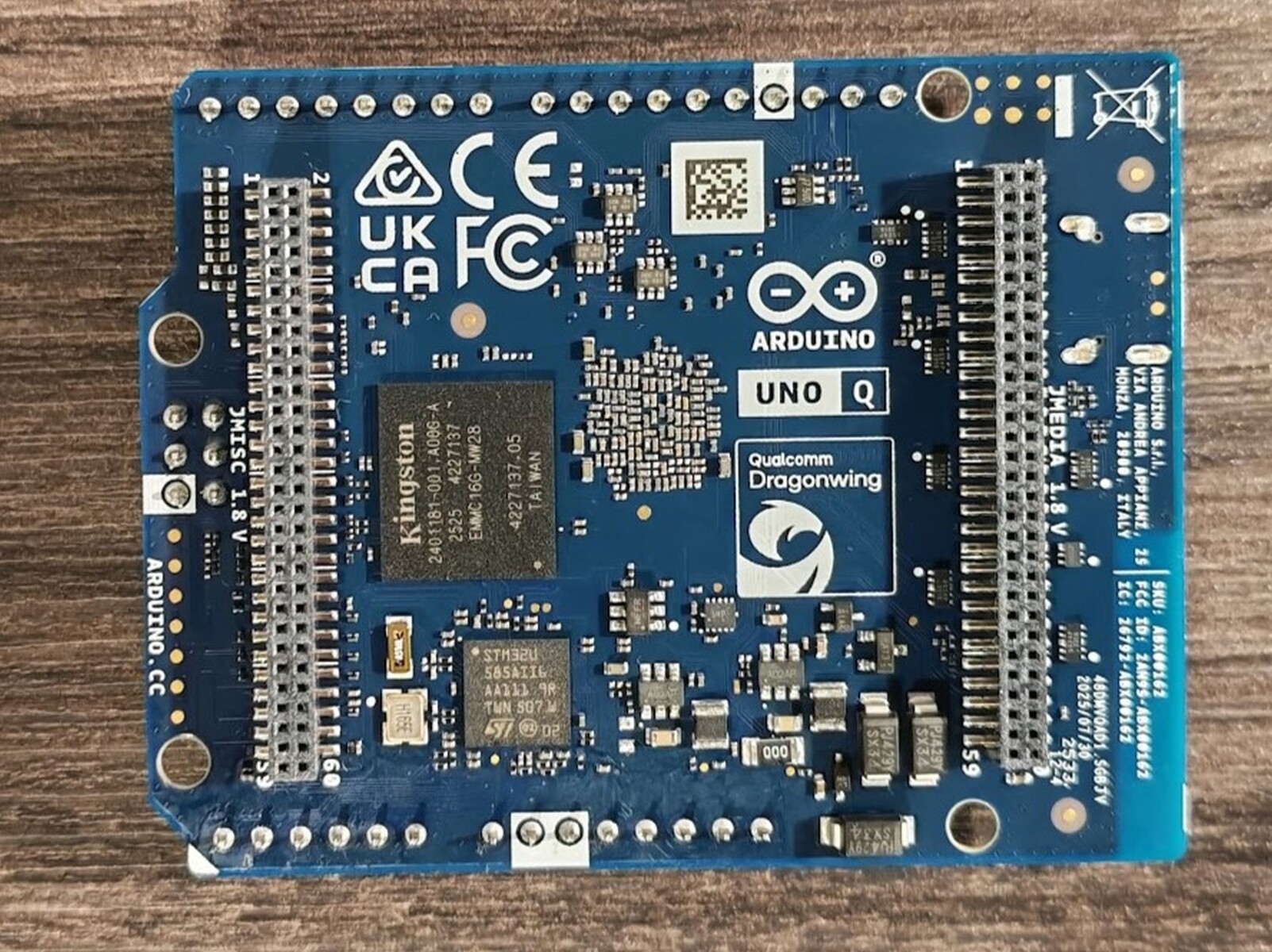 O Arduino UNO Q é um computador de placa única construído com base em um SoC da Qualcomm e pode funcionar tanto como uma placa de desenvolvimento quanto como um sistema de desktop. Ele suporta uma ampla gama de sensores e atuadores e também permite a execução local de modelos de IA.