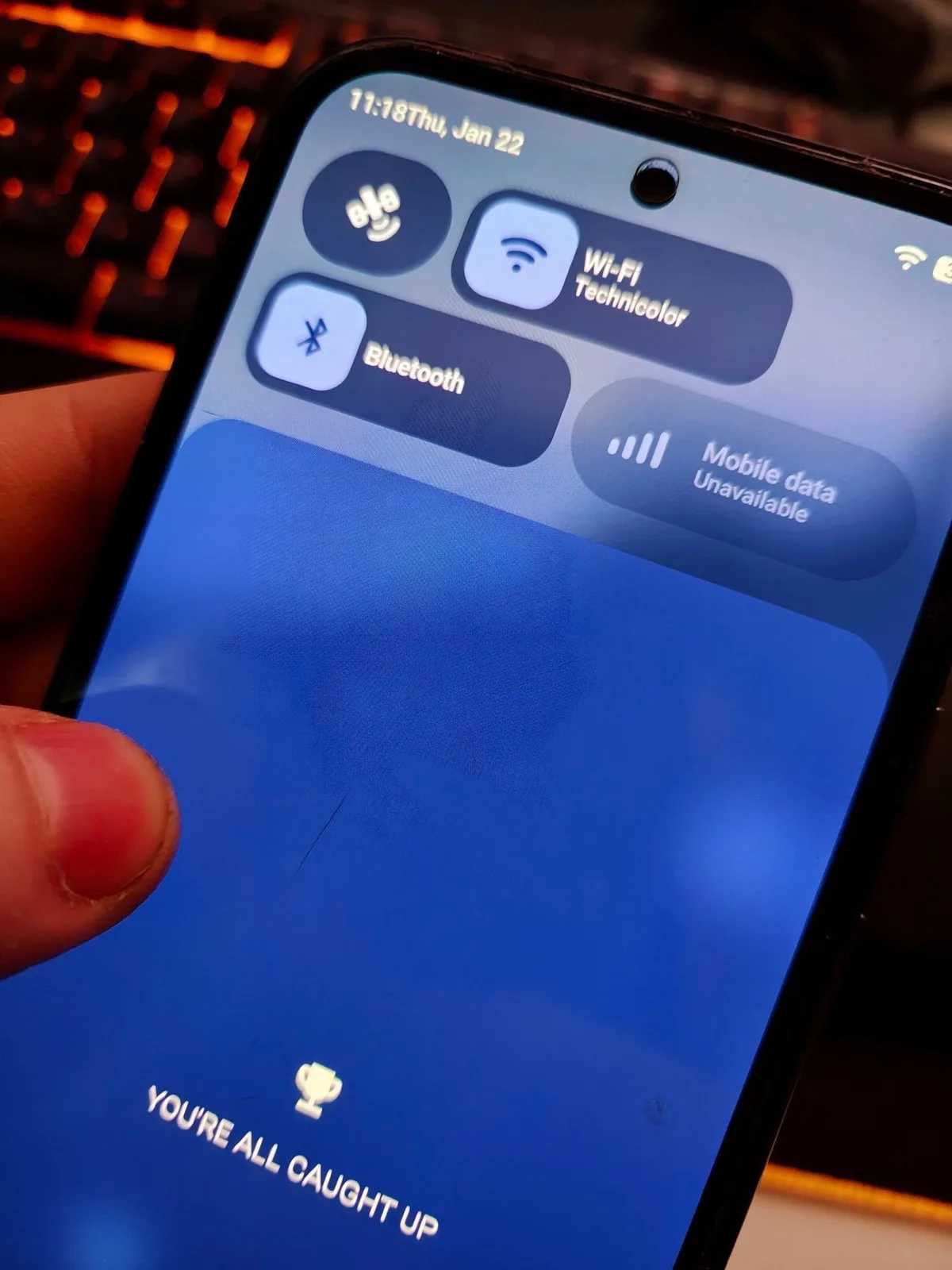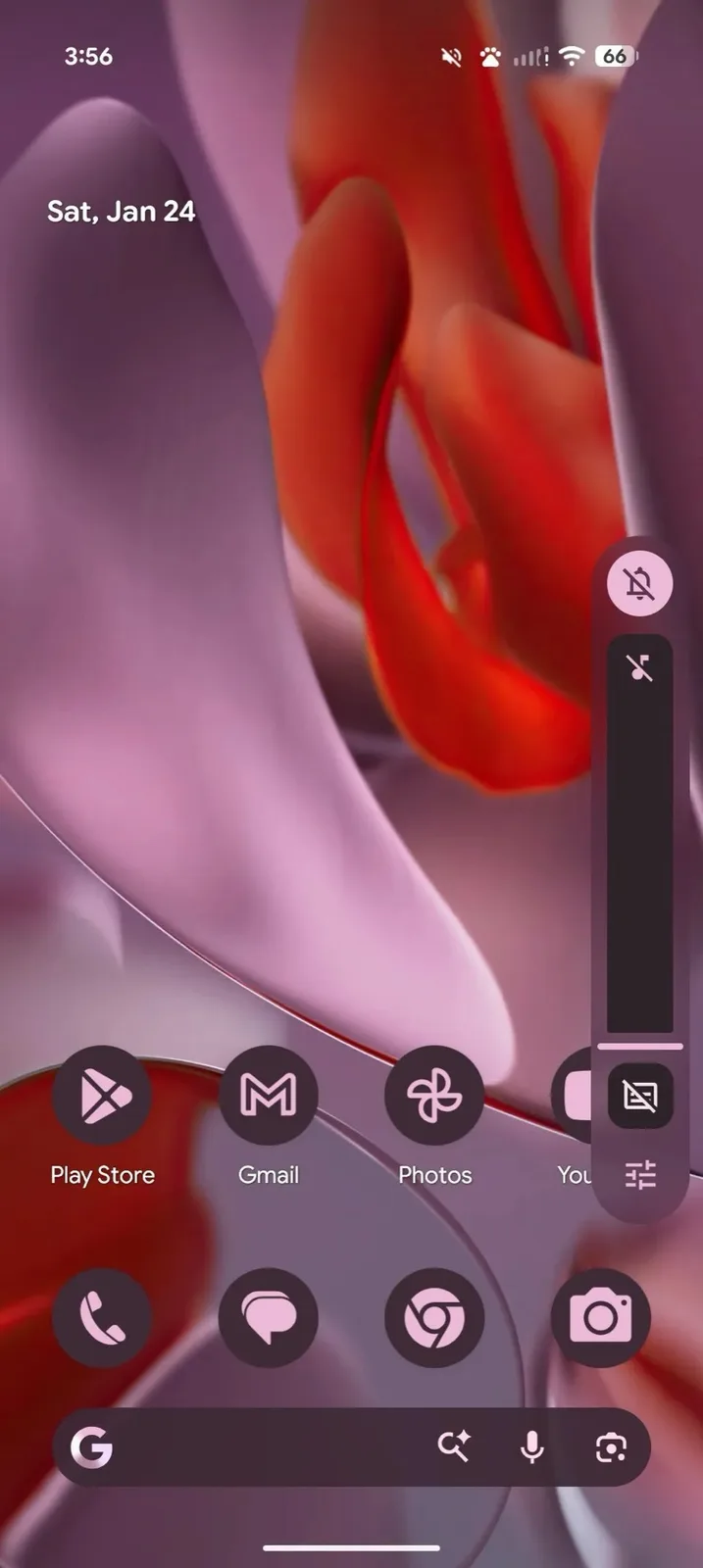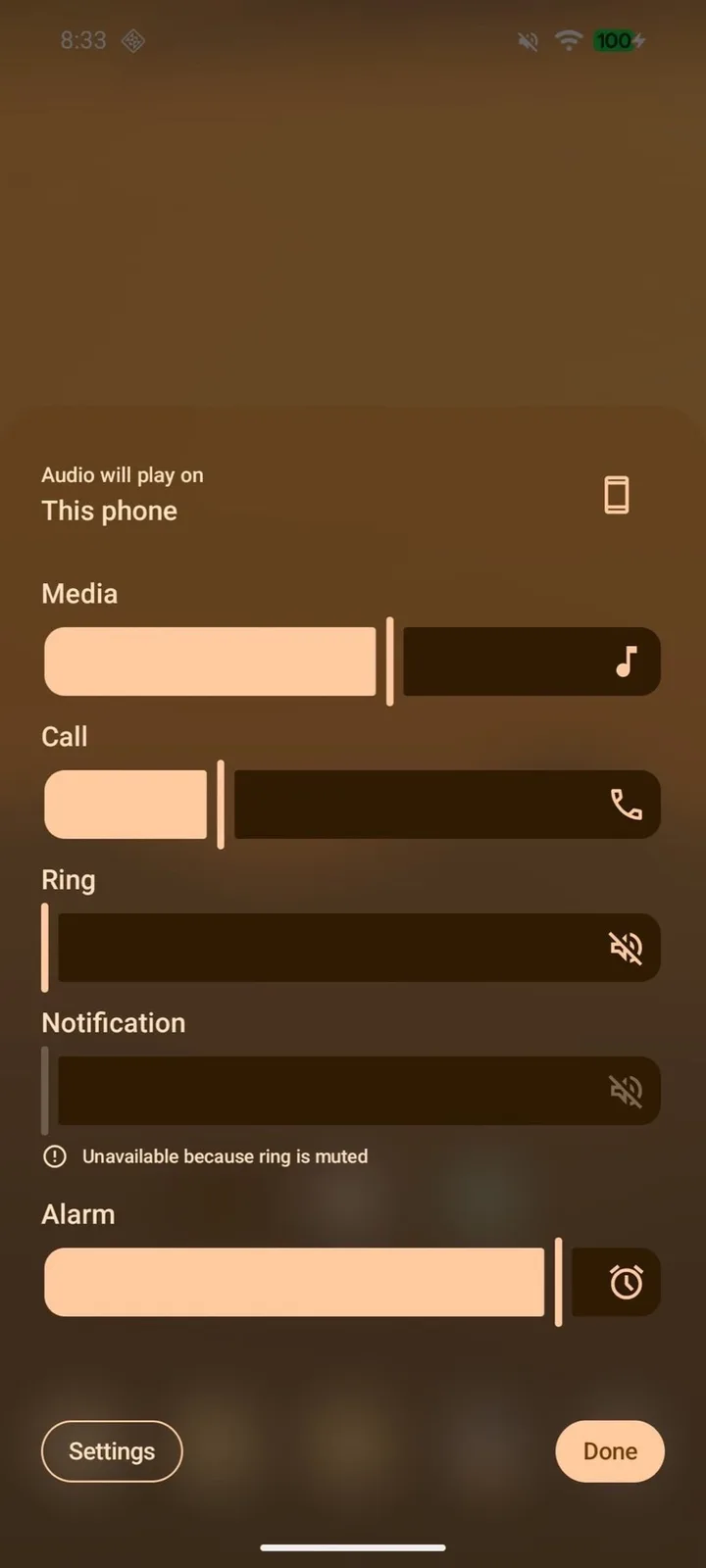 Essa nova abordagem de design é claramente perceptível no painel de volume, por exemplo. Em vez de um plano de fundo sólido, como antes, o plano de fundo agora é ligeiramente transparente, pois os elementos por trás dele são borrados com muito mais intensidade do que nos dispositivos Apple para melhorar a legibilidade. O Google tinge essas áreas transparentes usando a cor de destaque que foi selecionada pelo usuário.