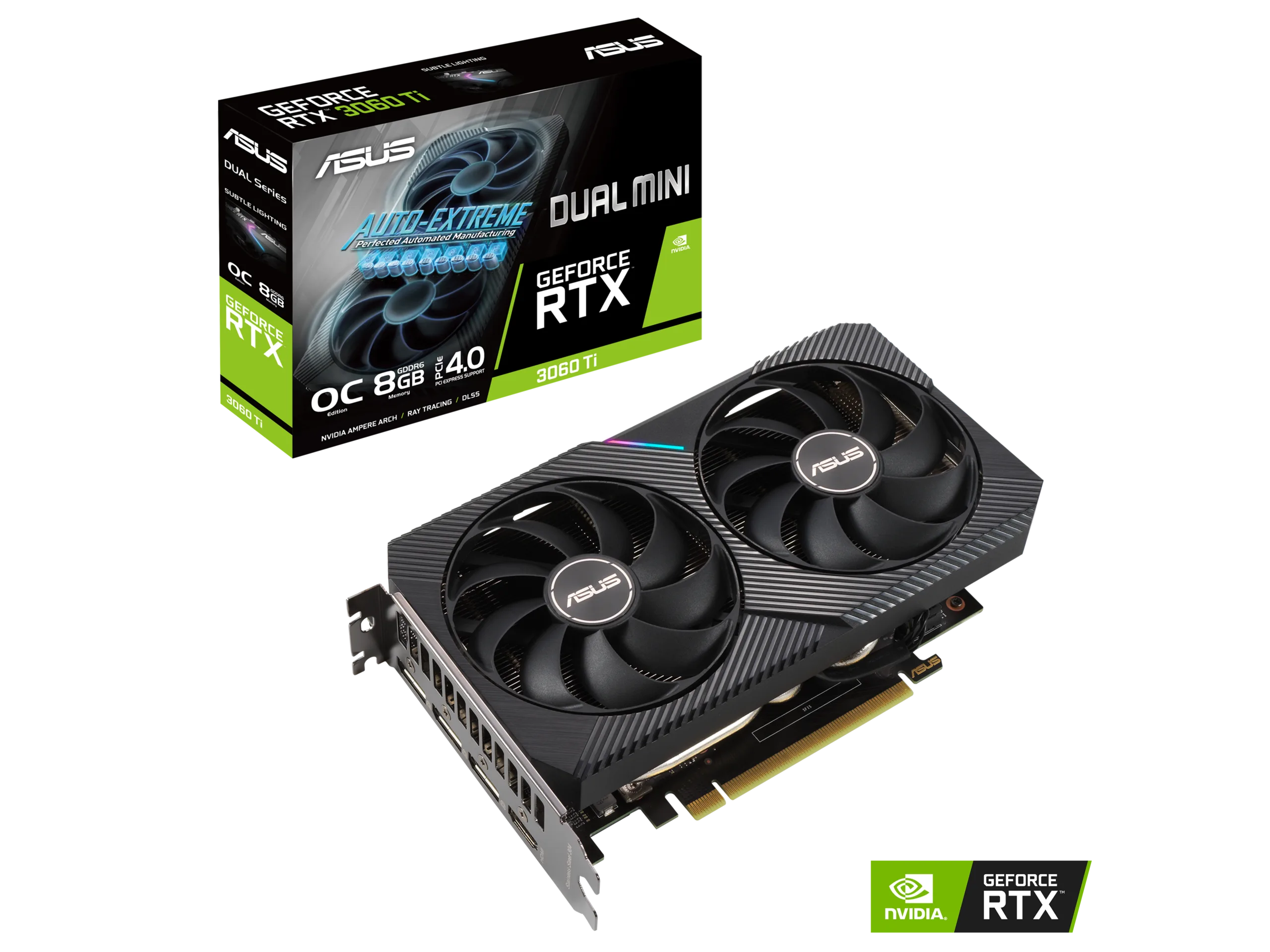 Para a nova geração de GPU RTX 3000, a Nvidia decidiu fazer algo especial e introduziu um design personalizado mesmo nos cartões de Edição dos Fundadores. Enquanto a placa PCB em si é notavelmente reduzida graças à tecnologia de 8 nm, o comprimento total da placa é consideravelmente aumentado pelo resfriador personalizado que é suposto maximizar a eficiência. É verdade que a solução de resfriamento é muito importante para as novas placas baseadas em Ampere, mas os parceiros da AIB demonstraram que resfriadores menores ainda podem ser eficientes, ao mesmo tempo em que mantêm uma pegada geral menor que permite que tais GPUs se adaptem às construções cada vez mais populares de pequenos fatores de forma. A Asus está entre as primeiras AIBs a fornecer uma dessas placas especificamente projetada para construções de mini-ITX com o novo modelo Dual GeForce RTX 3060 Ti Mini OC Edição 8 GB.