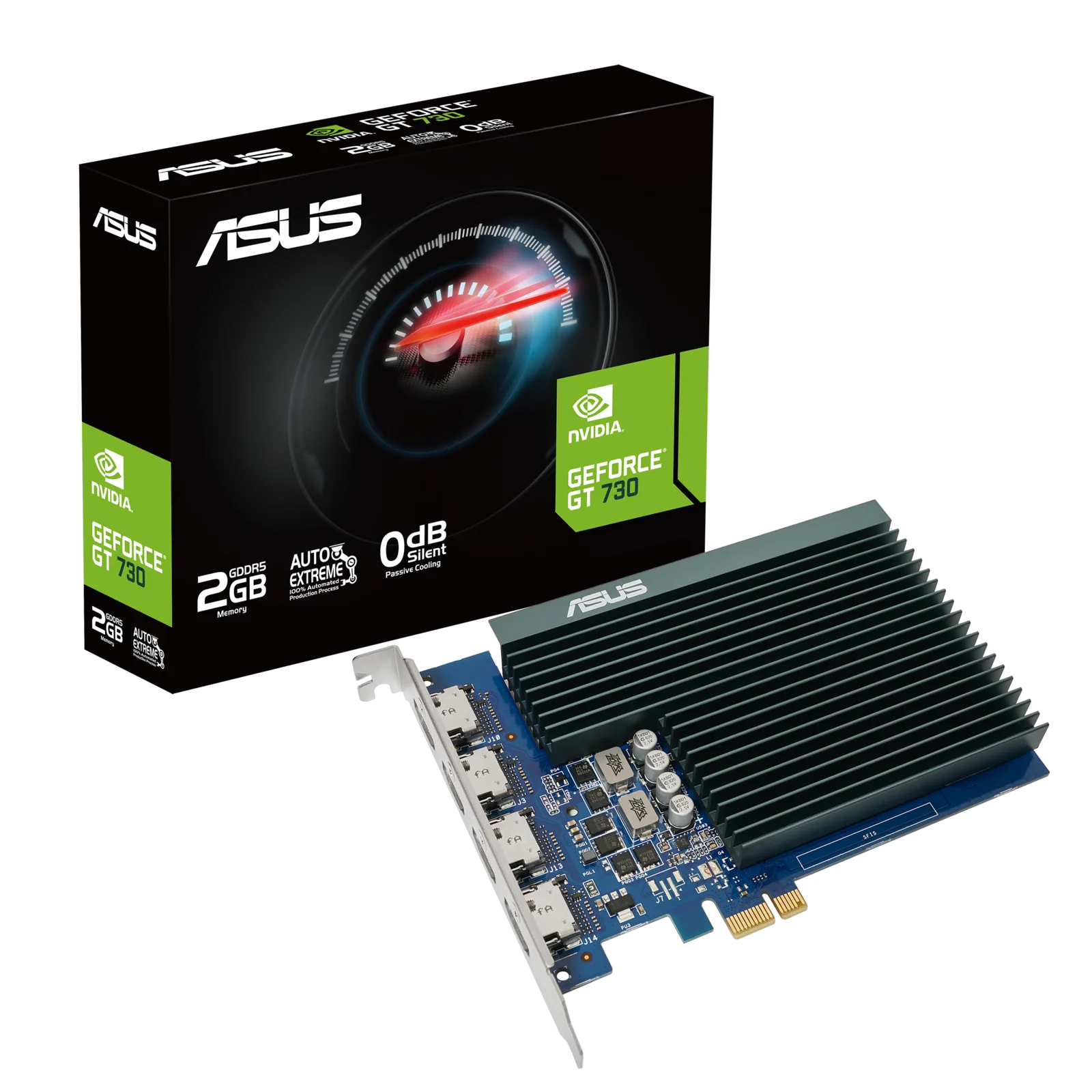 O Kepler baseado em GeForce GT 730 está praticamente inalterado, na maior parte do tempo. Ele vem com 2GB de GDDR5 VRAM relógio a 5,010MHz, tem 384 núcleos CUDA e uma velocidade de relógio base de 902MHz, que pode aumentar até 927MHz. A placa gráfica é fornecida com quatro portas HDMI 1.4 que podem emitir vídeo de 4K. A Asus não especificou o TDP da placa, mas recomenda uma PSU de 300W para acompanhá-la