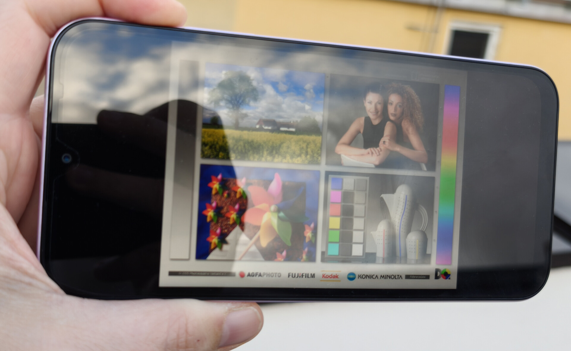 Escolha uma cena e navegue pela primeira imagem. Um clique muda a posição nas telas sensíveis ao toque. Um clique na imagem ampliada abre o original em uma nova janela. A primeira imagem mostra a fotografia em escala do dispositivo de teste.