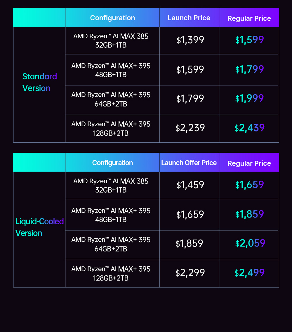 Especificamente, o OneXFly Apex custou a partir de US$ 1.399 no Indiegogo com 32 GB de RAM, 1 TB de armazenamento e um processador AMD Ryzen AI Max 385 APU com uma Radeon 8050S iGPU. Para aqueles que procuram a poderosa Radeon 8060Sera preciso desembolsar pelo menos US$ 1.599 pela Ryzen AI Max+ 395 Ou US$ 1.659 para a variante de resfriamento líquido opcional do One-Netbook. Infelizmente, a empresa anunciou que esses preços devem aumentar em até 14% em breve.