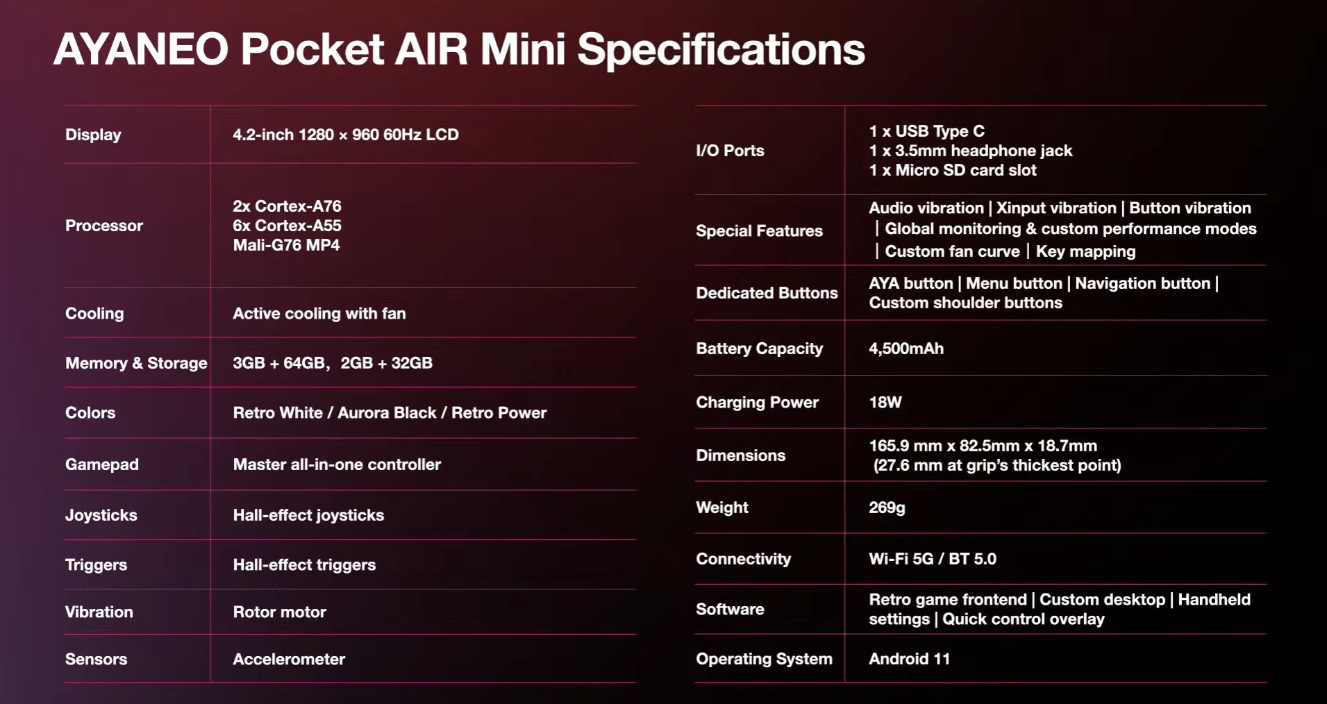 O Ayaneo Pocket Air Mini estará disponível para pré-encomenda em outubro, a partir de US$ 69,99 para o modelo básico com 2 GB de RAM e 32 GB de armazenamento, e aumentando para US$ 79,99 para a versão com 3 GB de RAM e 64 GB de armazenamento. Esses preços são os preços super antecipados, pois os preços finais de varejo são US$ 89,99 e US$ 99,99, respectivamente.