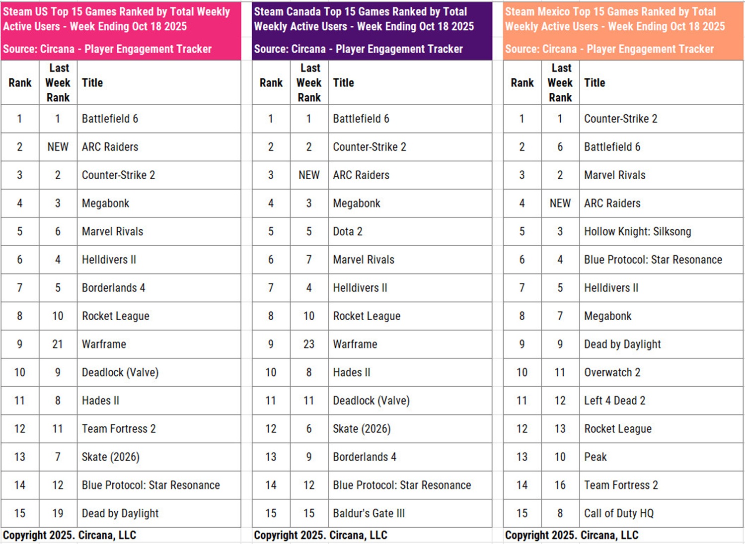 O novo jogo gratuito Battlefield RedSec também oferece concorrência ao Warzone. Impulsionada por esse lançamento, a Dice pode continuar a dominar os jogos para PC. Enquanto o Call of Duty está à frente nos consoles, o número de jogadores do Battlefield 6 o impulsiona para o primeiro lugar nos gráficos do Circana's Steam nos EUA e no Canadá.