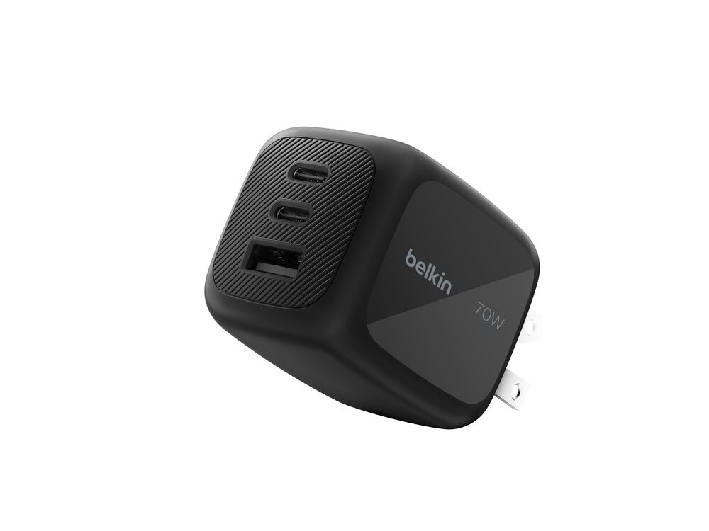 A Belkin lançou seu novo carregador de parede BoostCharge Pro 3-Port GaN 70W nos EUA, um adaptador compacto que pode alimentar até três dispositivos ao mesmo tempo. Ele oferece duas portas USB-C e uma porta USB-A para uma potência total de 70W, e o senhor pode adquiri-lo agora por US$ 39,99 na Amazon ou um pouco mais na loja da Belkin em https://www.belkin.com/p/3-port-gan-wall-charger-70w/WCH018dqWH.html.