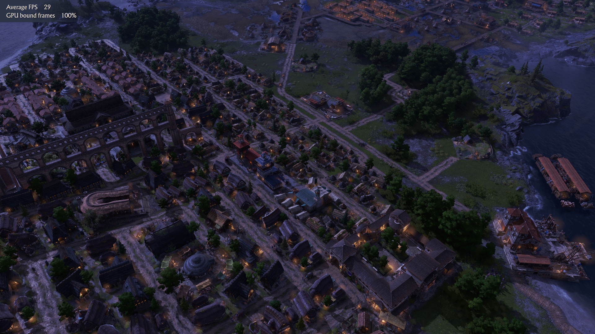 O Anno 117 é incrivelmente bonito para um título de construção, mas também exigente. Campos de lavanda ondulados, paisagens tempestuosas e encharcadas de chuva, litorais pitorescos, cidades detalhadas e a agitação de seus habitantes exercem grande pressão sobre o hardware.