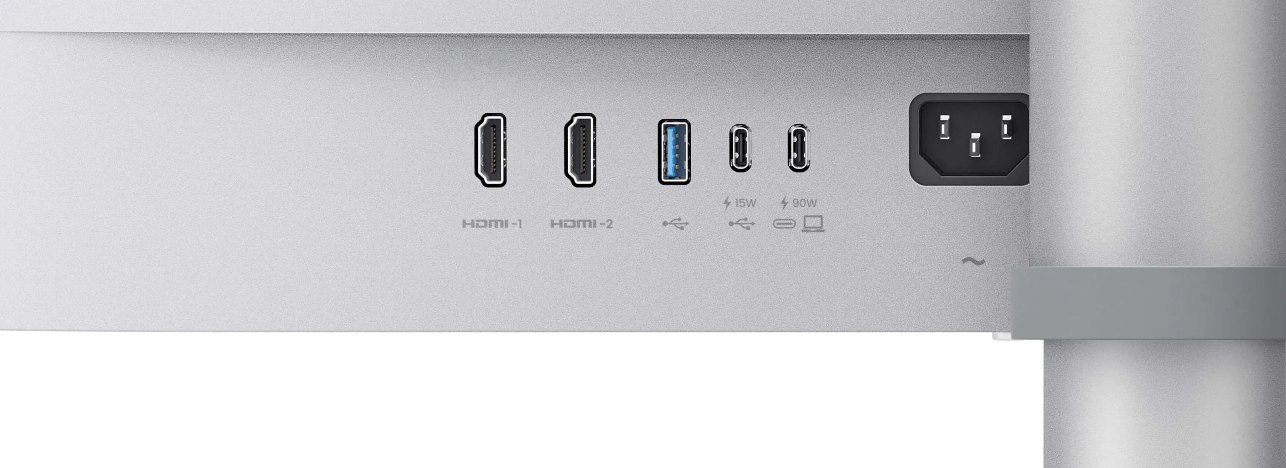 Recursos ergonômicos estão disponíveis, incluindo ajuste de altura, ajuste de inclinação e rotação de 90 graus para o modo retrato (pivô). Uma porta USB-C está integrada, permitindo que dispositivos compatíveis sejam alimentados via USB PD com até 90 watts. Conexões HDMI e DisplayPort também estão disponíveis, bem como portas USB adicionais para conectar periféricos, como mouse e teclado