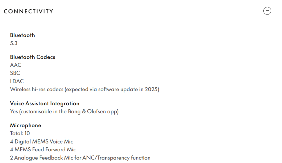 Da mesma forma, a empresa atualizou sua Ficha de Produto para omitir a promessa de adicionar conectividade multiponto para três dispositivos por meio de uma atualização de software também este ano. Portanto, não ficaríamos surpresos se a Bang & Olufsen também abandonasse silenciosamente esse compromisso em breve, sem dar maiores esclarecimentos.