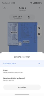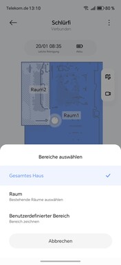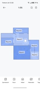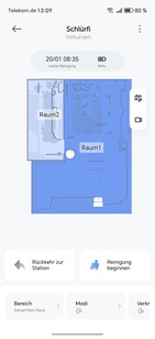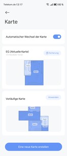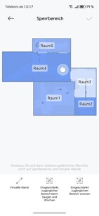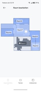 Paredes virtuais ou áreas restritas podem ser definidas no aplicativo. Para uma melhor visão geral, os móveis também podem ser colocados ou os revestimentos de piso podem ser armazenados. O robô divide de forma independente a área mapeada em cômodos, que podem ser mesclados ou separados conforme necessário. Também é possível nomear os mapas e os cômodos individuais.