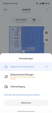 O Xiaomi Robot Vacuum 5 Pro é configurado e controlado por meio do aplicativo Xiaomi Home. O processo de configuração é guiado passo a passo e é fácil de entender. Logo em seguida, o robô aspirador e esfregão começa com uma rápida criação de mapa, que é continuamente refinado durante os processos de limpeza subsequentes.