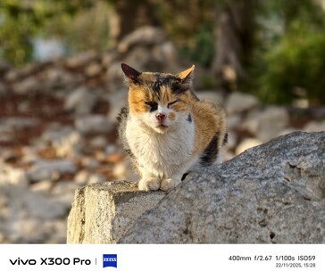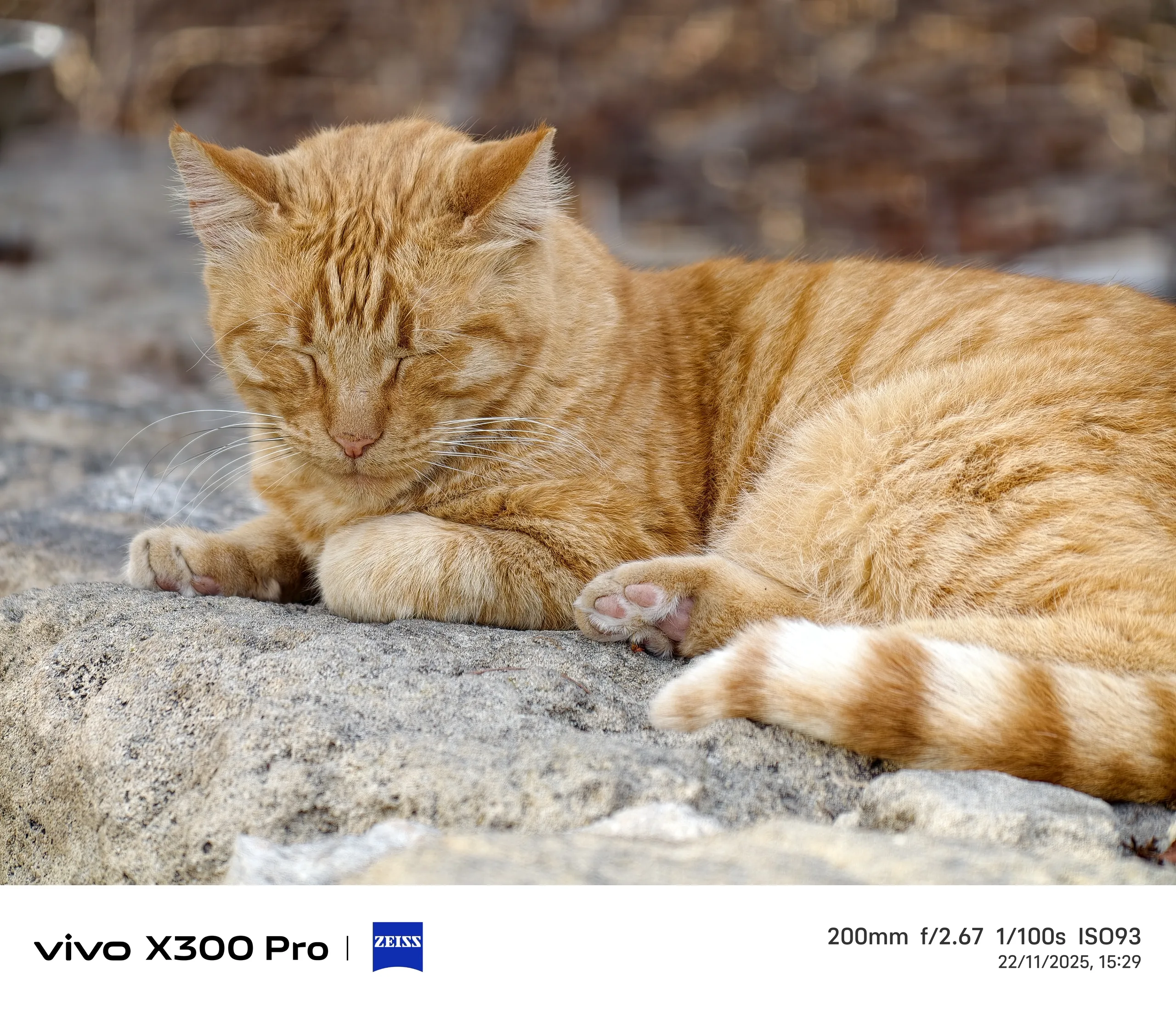 Com o teleconversor do Vivo X300 Pro, a teleobjetiva de 3,7x pode ser convertida em uma lente de 8,7x. Essa solução é mais complicada, mas produz um efeito semelhante. Abaixo estão algumas fotos tiradas com zoom óptico de 8,7x e 10x; o segundo retrato de gato foi capturado com 17,4x e 20x, respectivamente.