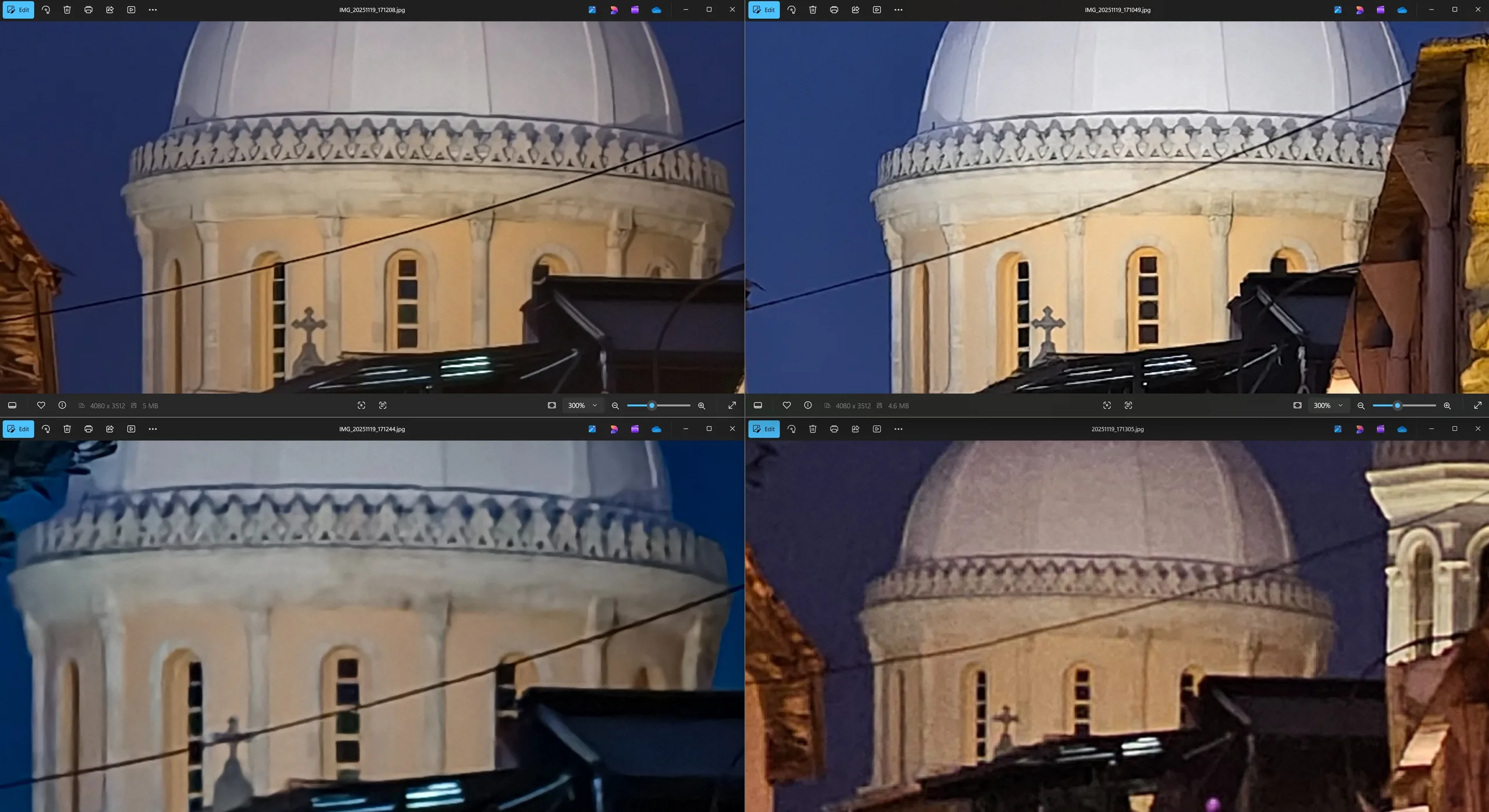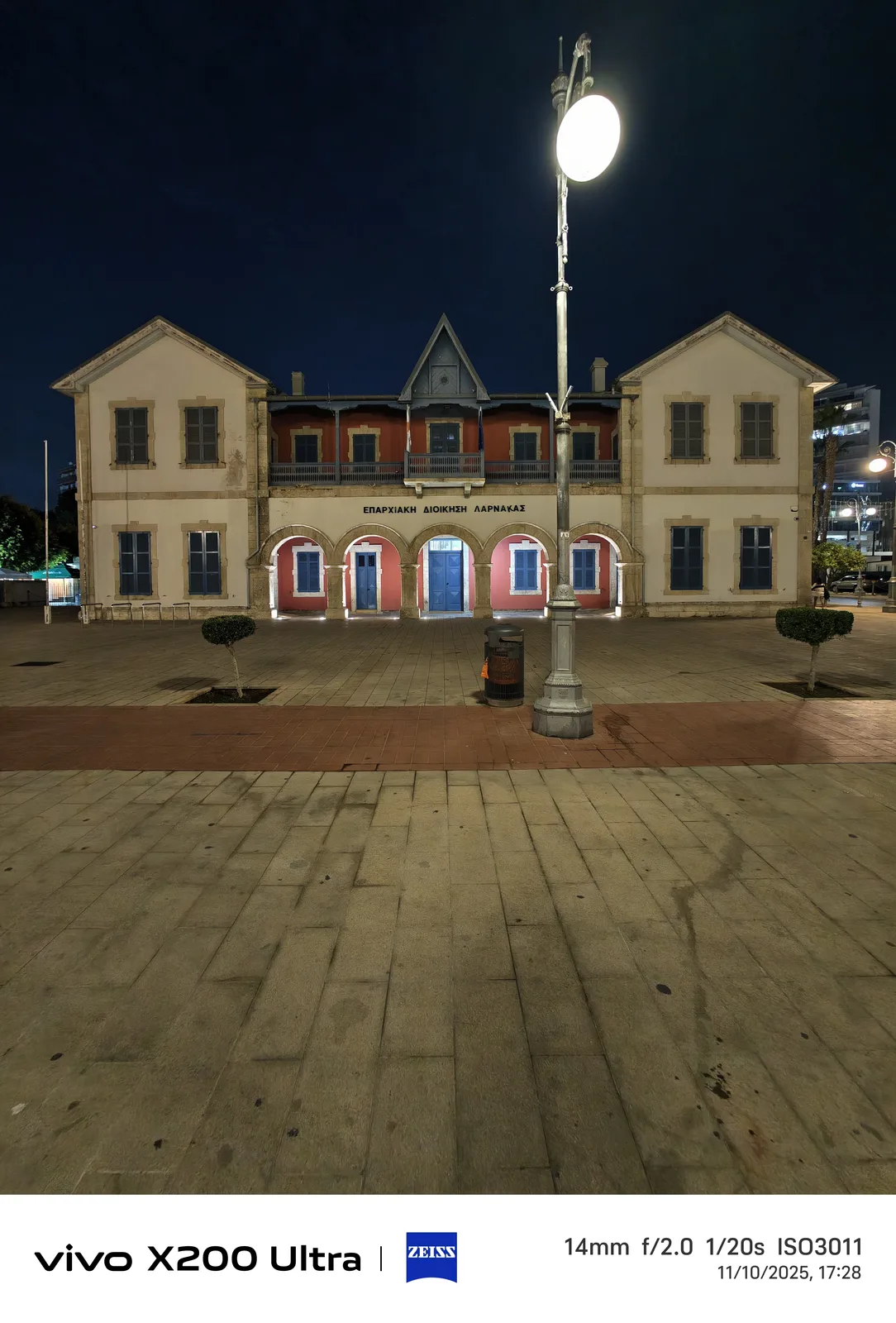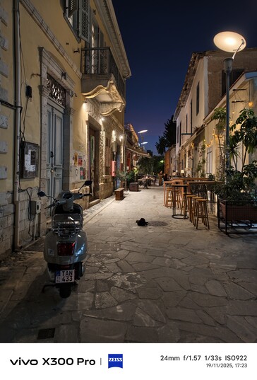 Sem nenhum teleconversor ou zoom de 10x, as quatro fotos de telefoto tiradas em Limassol mostram o que elas são capazes de fazer à noite, cada uma usando sua distância focal nativa. O Vivo X300 Pro e o Vivo X200 Ultra estão claramente em uma liga diferente no topo. A propósito, a fonte de luz em primeiro plano era na verdade azul, não branca, como a Samsung interpreta erroneamente a cena. Além disso, há uma notável falta de detalhes nas sombras.