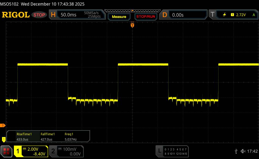 Assim como o F8 Proa Poco lista o escurecimento DC para controle de brilho nas especificações. No entanto, sob o osciloscópio, isso se revela um escurecimento PWM de alta frequência com uma baixa frequência de base. Como resultado, a tela é relativamente agradável aos olhos, mas não totalmente livre de cintilação.