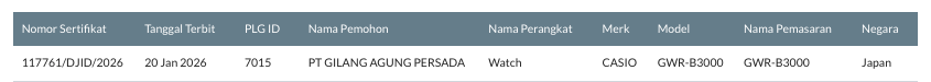 Um novo modelo Casio G-Shock está a caminho: o GWR-B3000. O número do modelo foi recentemente encontrado em bancos de dados como o Directorate General of Resources and Equipment for Post and Information Technology in Indonesia (SDDPI).