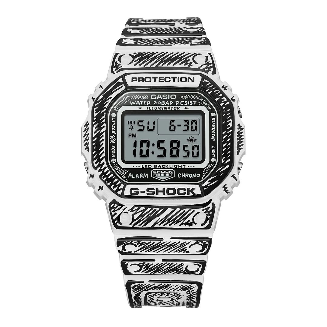 A nova informação compartilhada por @geesgshock no Instagram mostra que os relógios em estilo de quadrinhos revelados anteriormente - o Casio G-Shock DW-5600JV-7 e o Casio G-Shock DW-6900JV-1 - serão vendidos no varejo por US$ 180 cada. A colaboração tem a assinatura de Vides, com sua estética desenhada à mão e delineada com caneta, que dá aos dois relógios um visual estilizado de história em quadrinhos. A versão DW-5600 usa uma caixa e uma pulseira de resina branca com linhas pretas em estilo de esboço, enquanto o modelo DW-6900 inverte o tema com uma base preta e detalhes em contornos brancos arrojados no bezel e na pulseira.
