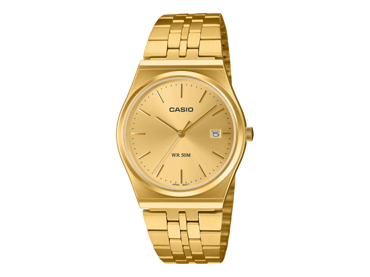 O MTPB145GC-9AV é um relógio todo em ouro, que a Casio descreve como tendo um design retrô inspirado nos anos 80. O relógio tem uma caixa, um mostrador e uma pulseira de aço inoxidável banhados a íon dourado. Ele mede 40,0 x 35,0 x 7,4 mm (~1,57 x 1,38 x 0,29 polegadas) e pesa 82 g (~2,9 oz).