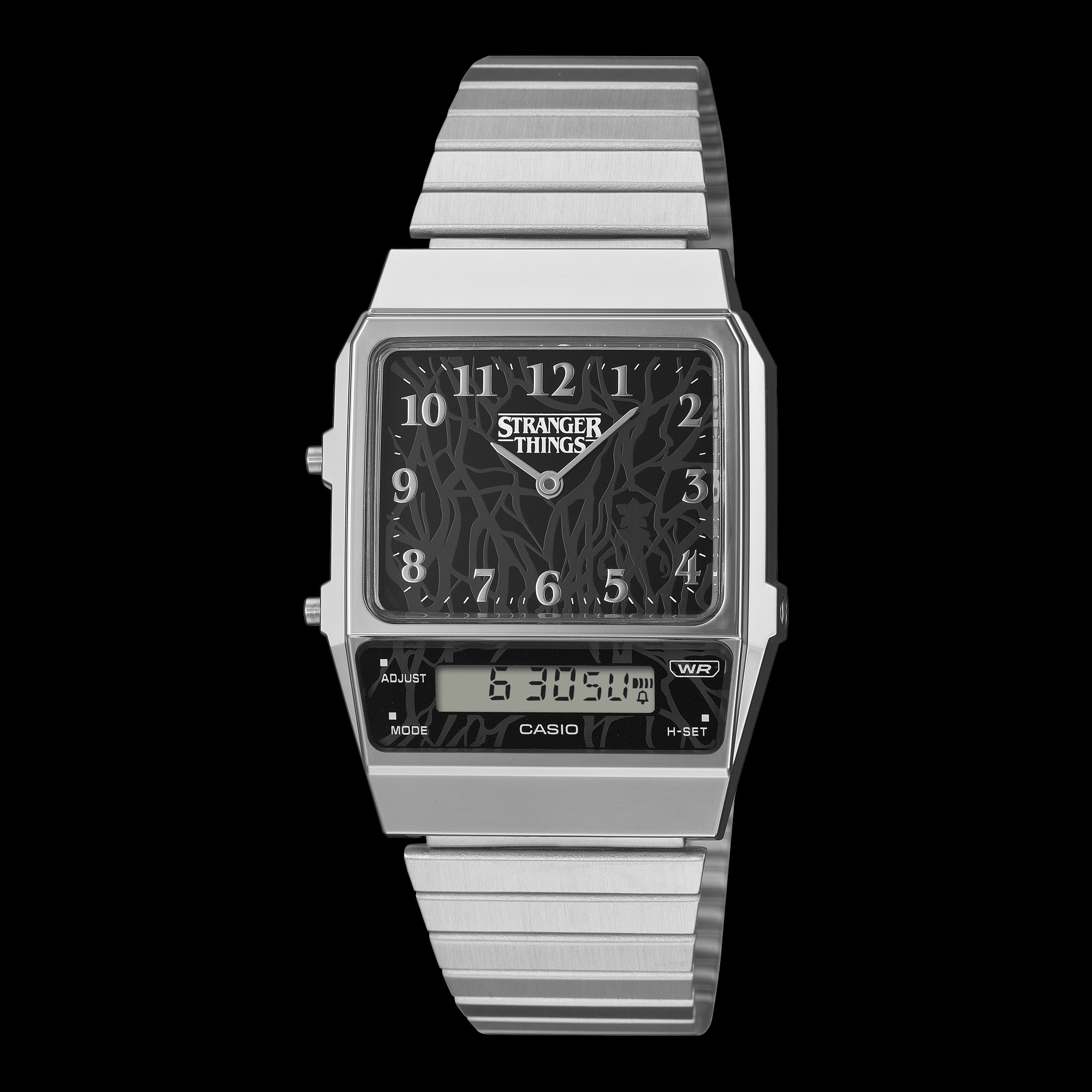 O AQ-800EST-1A também apresenta a videira sinuosa em seu mostrador analógico e em torno do fino mostrador digital. Esse modelo preto e prata tem uma caixa de resina e uma pulseira de aço inoxidável, com "001", uma tatuagem vista em Vecna, gravada no fecho. Esse relógio híbrido suporta dois fusos horários e também oferece um cronômetro, um alarme diário e sinais de hora em hora. Não se sabe quando os relógios Casio Stranger Things DW-5600STT-1 e AQ-800EST-1A serão lançados na Europa. No site internacional da marca https://www.casio.com/intl/watches/gshock/product.DW-5600STT-1/ambos os modelos estão listados como lançamentos de dezembro de 2025. Se ou quando eles poderão ser lançados nos EUA, e a que preço, é outra incógnita por enquanto.
