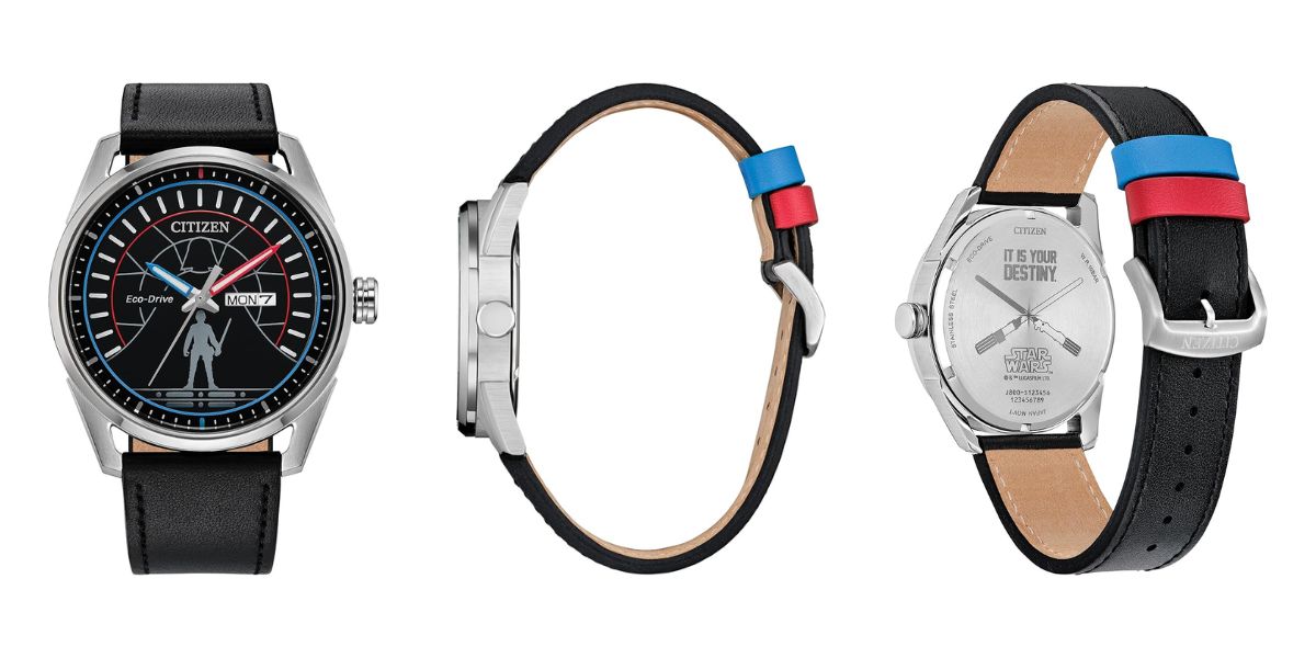 O relógio Citizen Star Wars Duel tem um mostrador preto, com contornos prateados de Luke Skywalker e Darth Vader, que fizeram o famoso duelo em Cloud City no filme O Império Contra-Ataca. Há detalhes em vermelho e azul em todo o mostrador, inclusive nos leques cheios de luz e nas presilhas da pulseira do relógio; essas são as cores dos sabres de luz usados na luta. O mostrador é circundado por uma caixa de aço inoxidável escovado, medindo 42 mm (~1,65 polegadas) de diâmetro, com o fundo da caixa de aço gravado com o texto "It is your destiny" (É o seu destino) e dois sabres de luz.