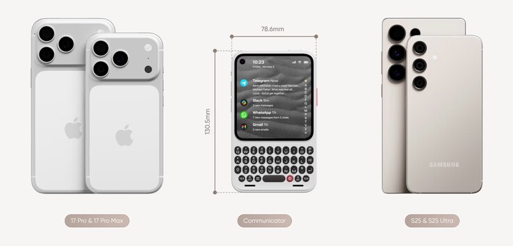 O Clicks Communicator é um smartphone compacto de médio porte que vem com o Android 16 e está pronto para receber atualizações até o Android 20. Abaixo da tela quase quadrada de 4 polegadas, há um teclado sensível ao toque e que, portanto, também funciona como trackpad, enquanto a barra de espaço abriga um sensor de impressão digital.