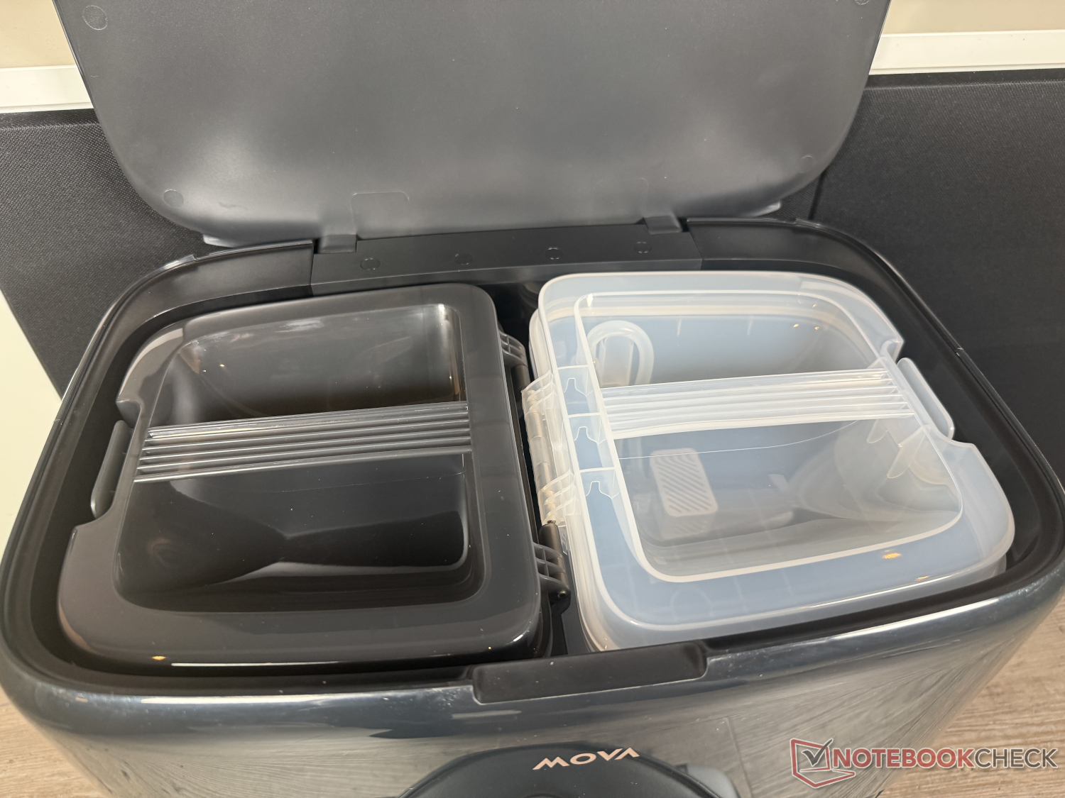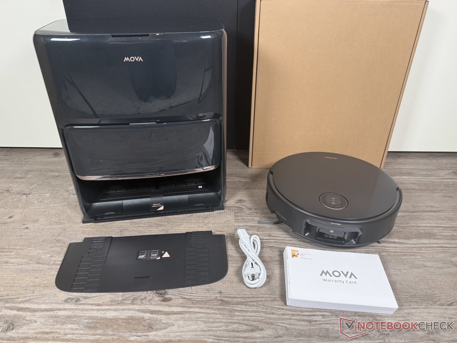 O Mova Z60 Ultra Roller na versão completa também vem com um escopo de entrega abrangente. Além do robô e da estação base, ele vem com quatro sacos de pó e limpadores de rolo, duas escovas principais, três escovas laterais, quatro filtros de pó (cada um instalado uma vez, sem reposição), bem como 1 l de solução de limpeza e 200 ml de removedor de odor de animais de estimação.