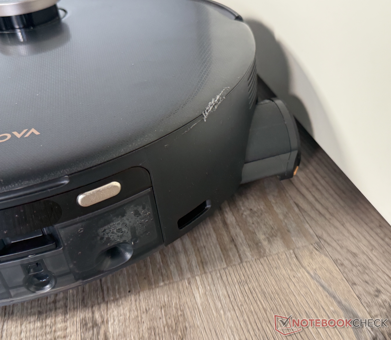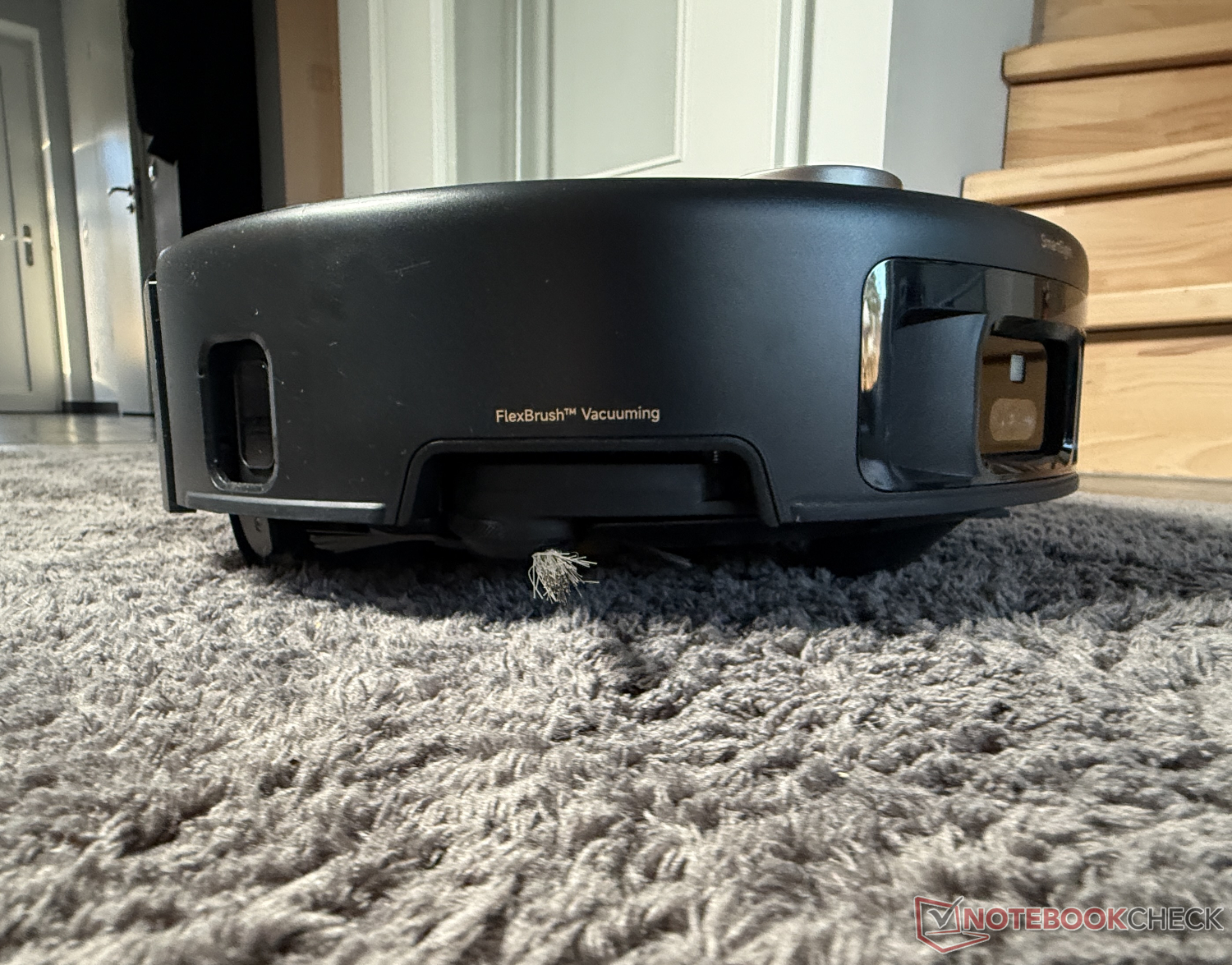 Ele também foi capaz de remover a maior parte da sujeira mais difícil, muitas vezes até a borda, graças à função de extensão lateral. Para nosso gosto, ele poderia ter se aproximado um pouco mais dos móveis e dos rodapés. Às vezes, ele deixa um pouco de distância de segurança com seu rodo extensível. No entanto, preferimos ter uma faixa estreita e sem limpeza do que um interior arranhado causado pela cobertura plástica do rolo.