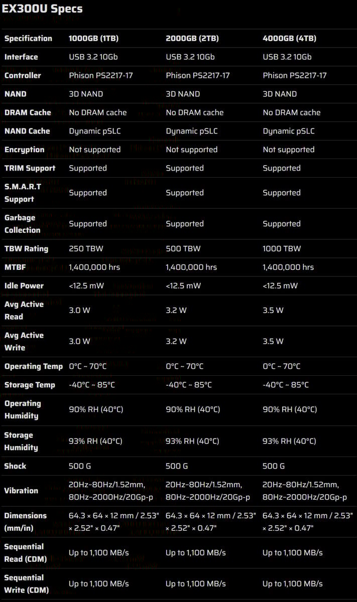 A Corsair lançou um novo SSD portátil compatível com MagSafe, o EX300U. Ele está disponível em três variantes de armazenamento, sendo que a opção inicial oferece 1 TB de armazenamento por US$ 99,99. Quanto aos outros dois, um deles é um modelo de 2 TB que custa US$ 159,99, enquanto a oferta de ponta tem 4 TB de armazenamento e custa US$ 324,99.