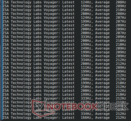 A ZSA não lista uma taxa de polling em nenhum lugar para o Navigator, mas eu o testei com o evhz no Linux e descobri que a taxa de polling máxima era de 334 Hz. A ZSA diz que as baixas taxas de sondagem no Voyager se devem ao fato de que os dados de sondagem do sensor e os efeitos RGB são todos tratados pela conexão TRRS, que tem largura de banda limitada. Embora 334 Hz (algo em torno de 210 Hz em média) não seja ótimo para jogos, certamente é mais do que suficiente para tarefas regulares de apontamento.