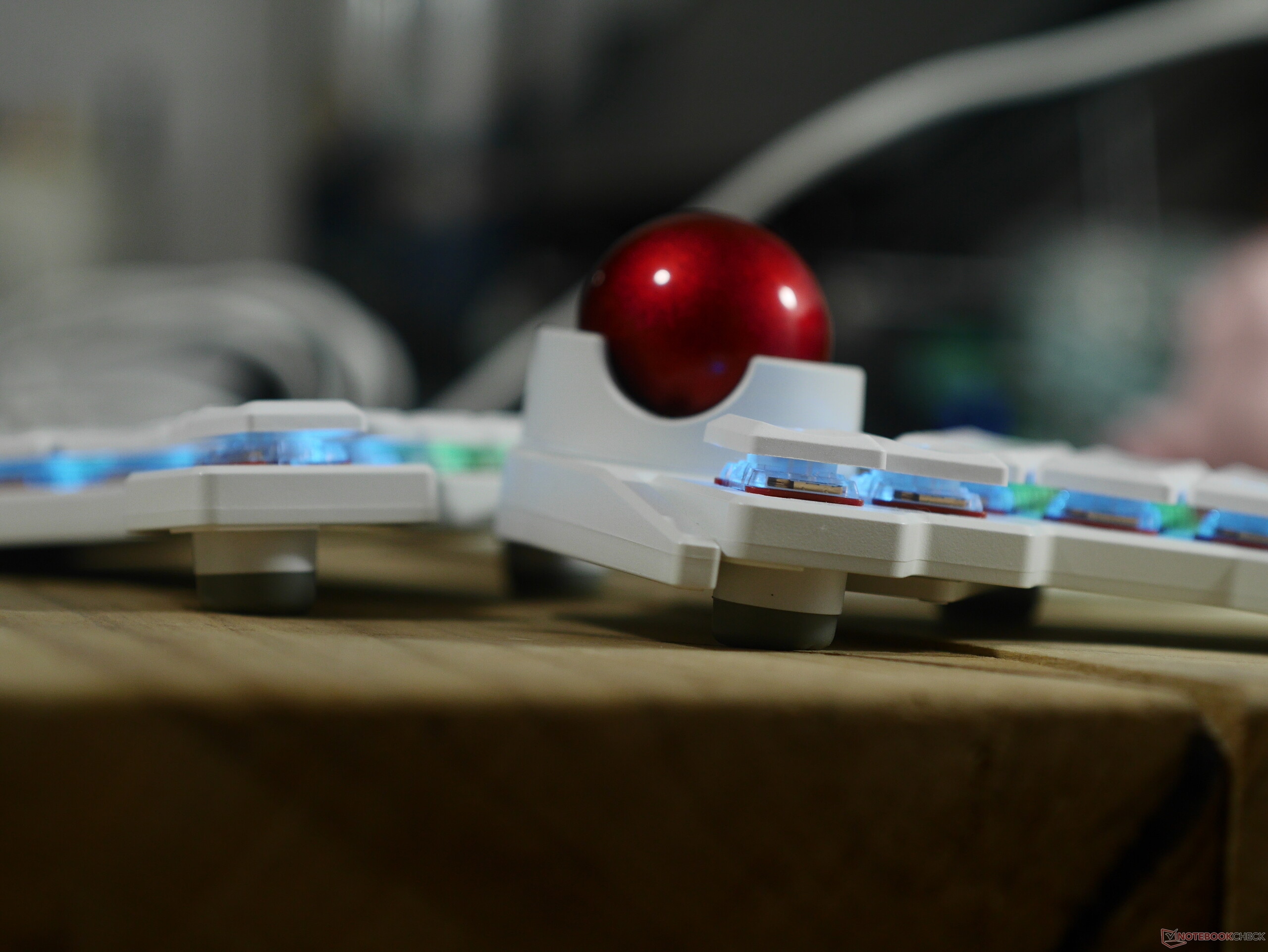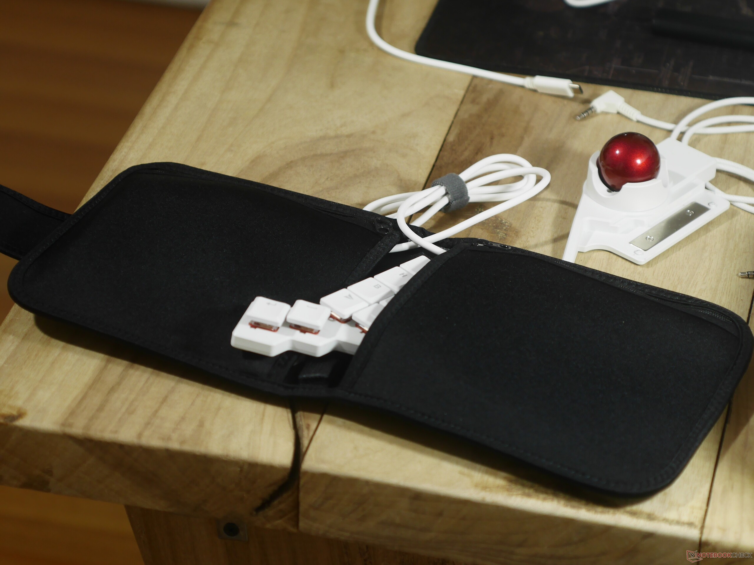 O Navigator, da mesma forma, é quase todo feito de plástico, inclusive a track ball de resina. No entanto, isso não significa que ele seja frágil - deixei a track ball cair várias vezes em ladrilhos de cerâmica e ela não mostra sinais de danos. O track ball usa rolamentos de cerâmica para uma operação suave e se prende firmemente ao Voyager com um grande ímã de neodímio que é parafusado na carcaça da concha. O Navigator também vem com seu próprio estojo de transporte acolchoado que é grande o suficiente para o trackball, a concha e até mesmo o cabo USB mais longo que a ZSA inclui com o Voyager.