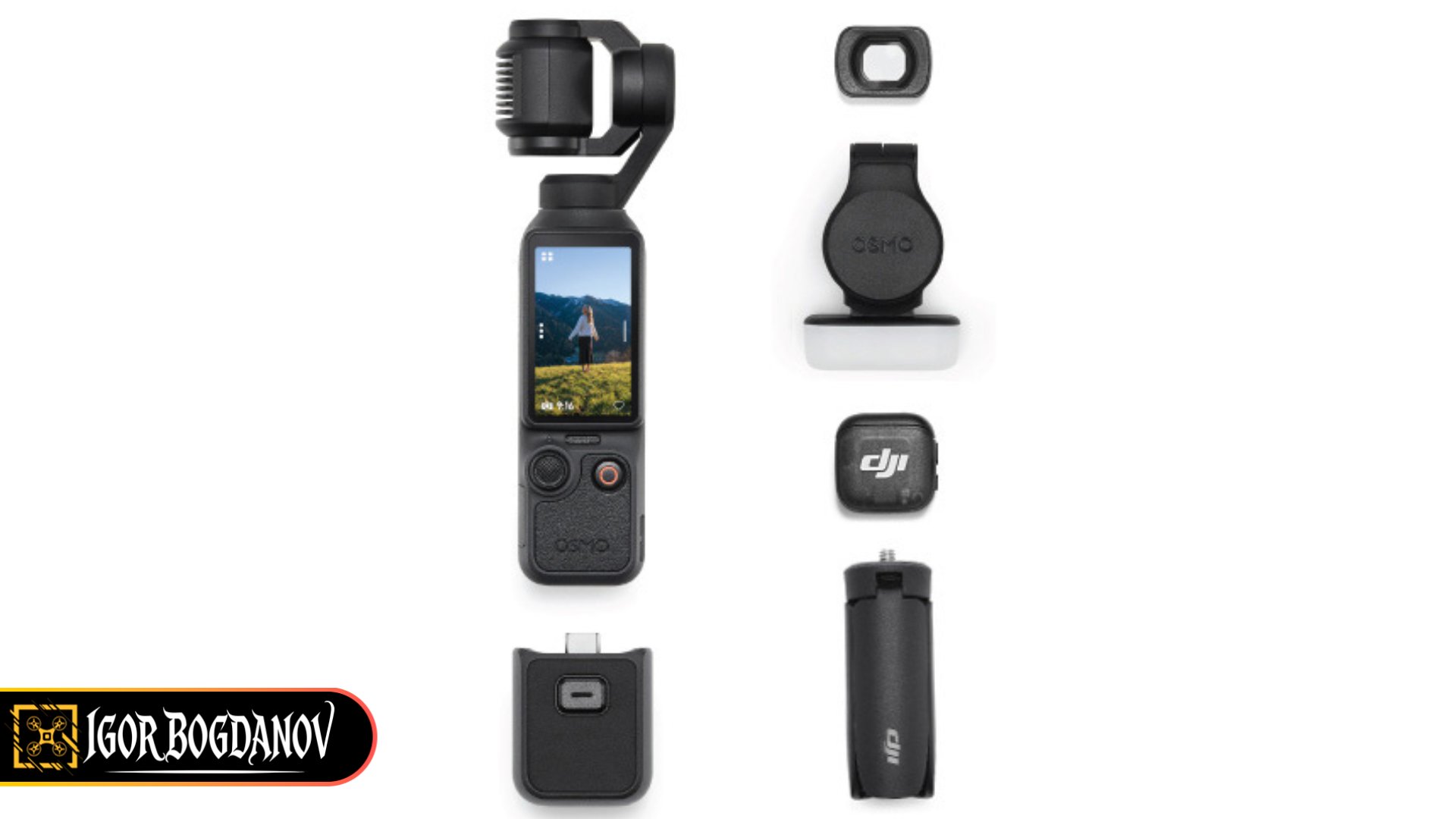 Agora, Bogdanov detalhou dois dos pacotes de acessórios da DJI antes do lançamento da câmera em 16 de abril. Aparentemente, o vazador está insinuando que o Osmo Pocket 4 virá com a nova luz de preenchimento LED da DJI por padrão, bem como uma alça com rosca de 1/4 de polegada, um transmissor, um mini tripé e uma lente grande angular.