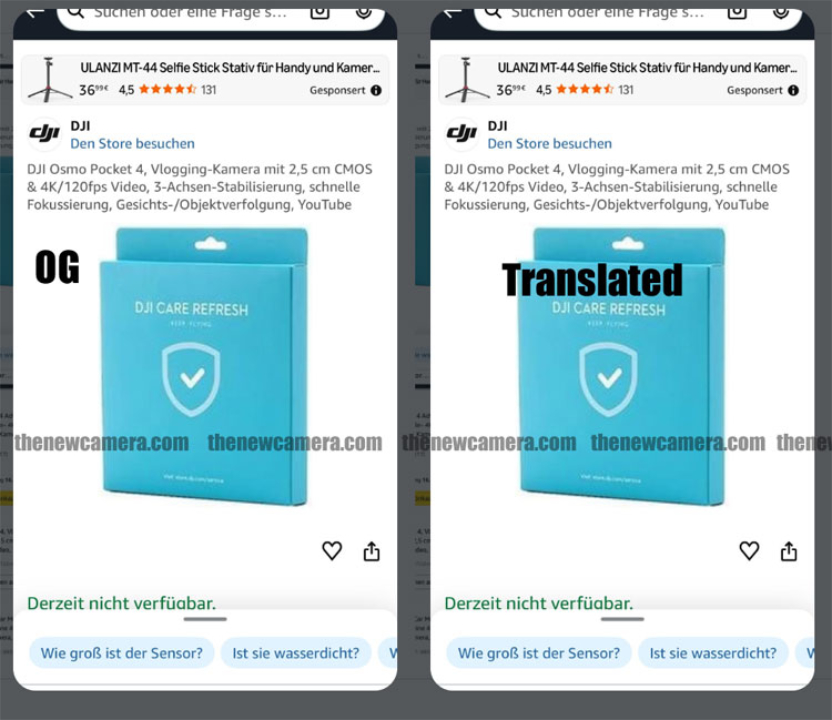 Ao mesmo tempo, as primeiras imagens do Osmo Pocket 4 mais barato apareceram na Amazon Alemanha. Provavelmente apenas um espaço reservado que foi rapidamente removido, parece que pelo menos uma empresa recebeu a notícia de que a série Osmo Pocket 4 seria lançada em breve. Infelizmente, novas informações indicam que nem o Osmo Pocket 4 nem o Osmo Pocket 4 Pro serão lançados este mês.