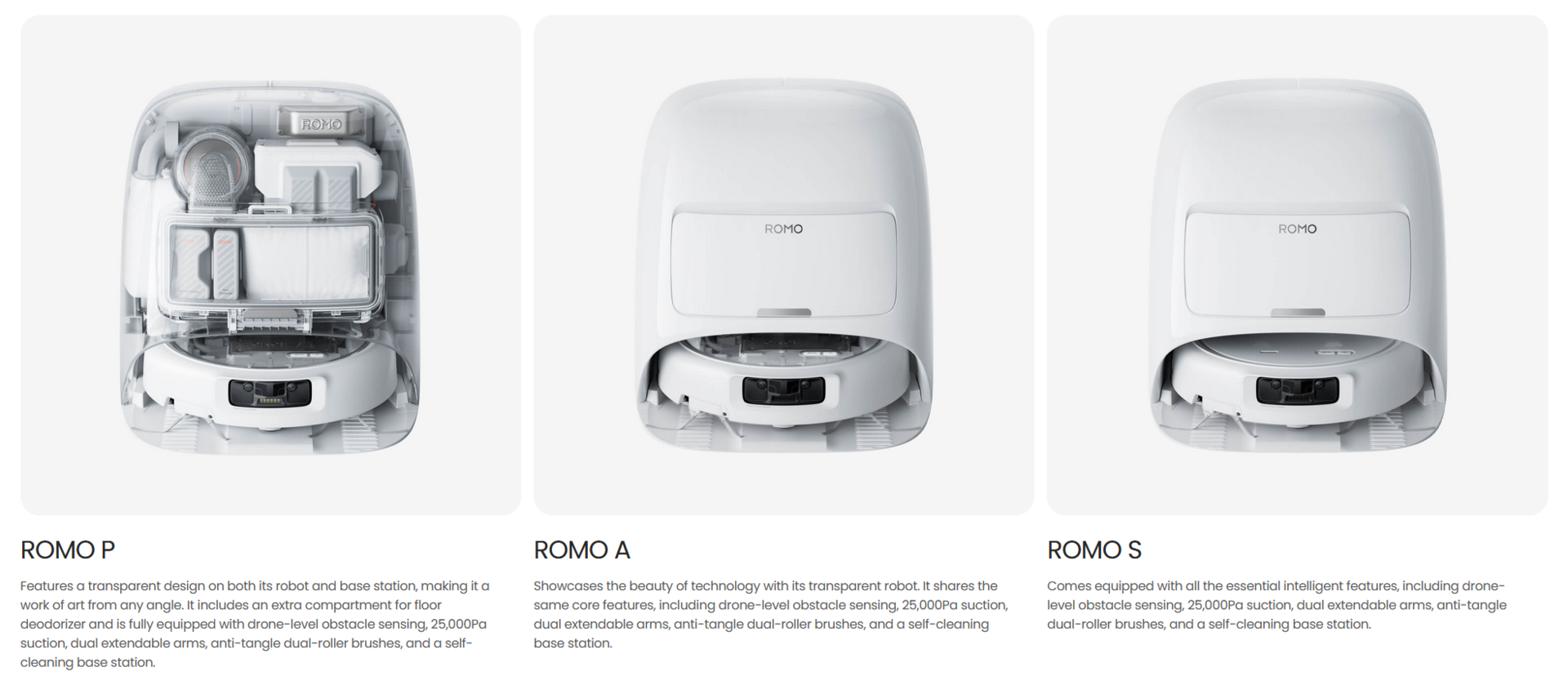 A Romo será enviada a partir de hoje (28 de outubro) pelo site store.dji.com e revendedores autorizados em três versões: Romo S (€1.299, ~$1.511), Romo A (€1.599, ~$1.860), e Romo P (€1,899, ~$2,210). O modelo P acrescenta janelas transparentes na unidade e na base, além de uma câmara de distribuição extra para produtos de limpeza concentrados ou aromatizantes de piso. Os acessórios oficiais incluem escovas sobressalentes, uma rampa para soleiras de 4 cm e uma solução de limpeza inicial.