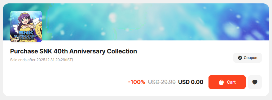 O pacote de arcade retrô da SNK acaba de ficar gratuito na loja Stove. Os jogadores de PC agora podem obter uma coleção de 24 títulos clássicos dos primeiros anos da empresa sem pagar nada. A SNK 40th Anniversary Collection normalmente é vendida por US$ 29,99 e agora está listada por US$ 0,00 com um desconto total de 100% por tempo limitado.
