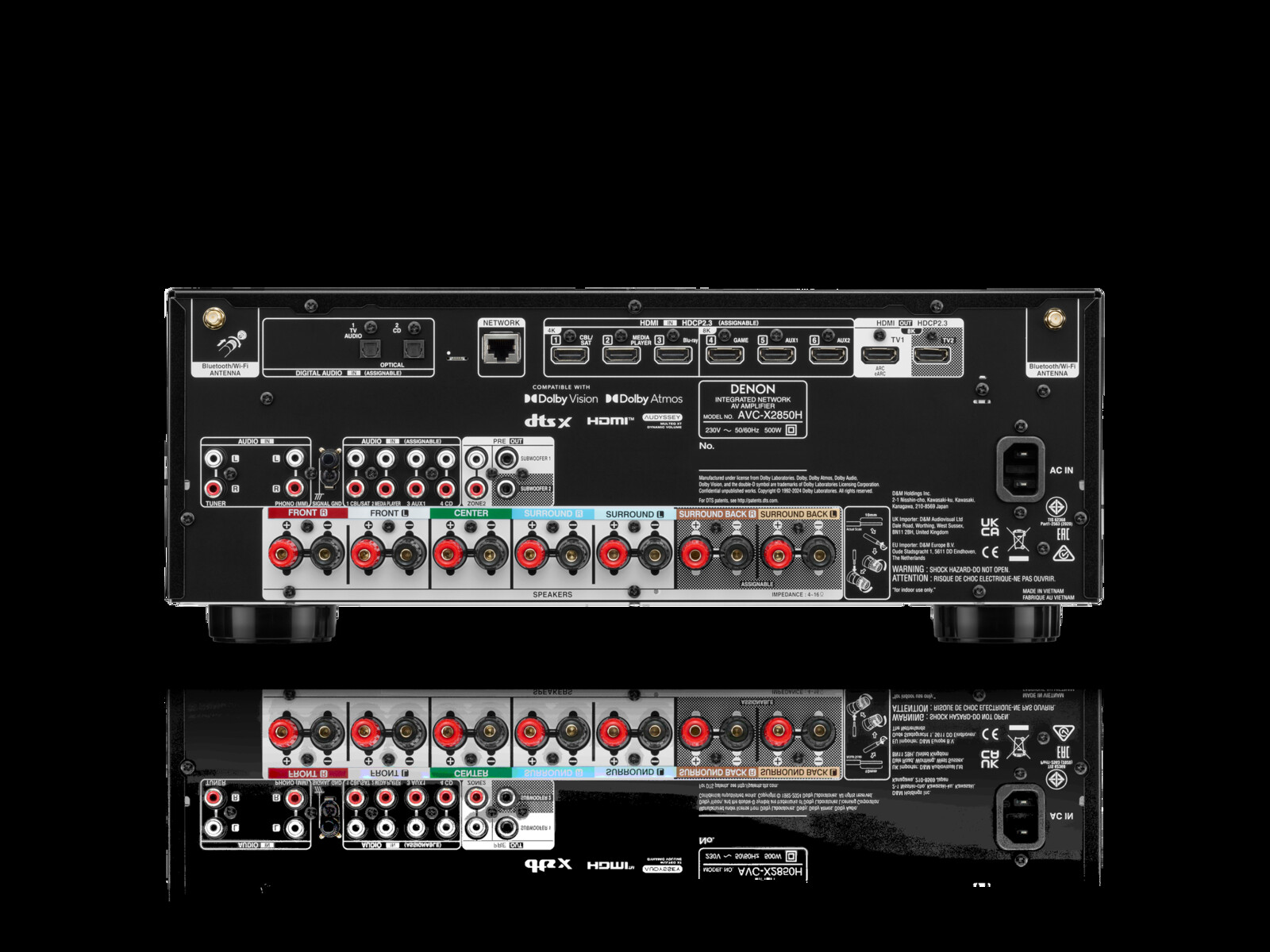 A Denon afirma que o receptor AV fica pronto para uso rapidamente graças a um assistente de configuração. O sistema pode ser ajustado com o Audyssey MultEQ XT. Há seis portas HDMI disponíveis, três das quais são compatíveis com 8K e também suportam eARC, ALLM e VRR. Além disso, há duas saídas HDMI para conectar uma TV e um projetor, por exemplo.