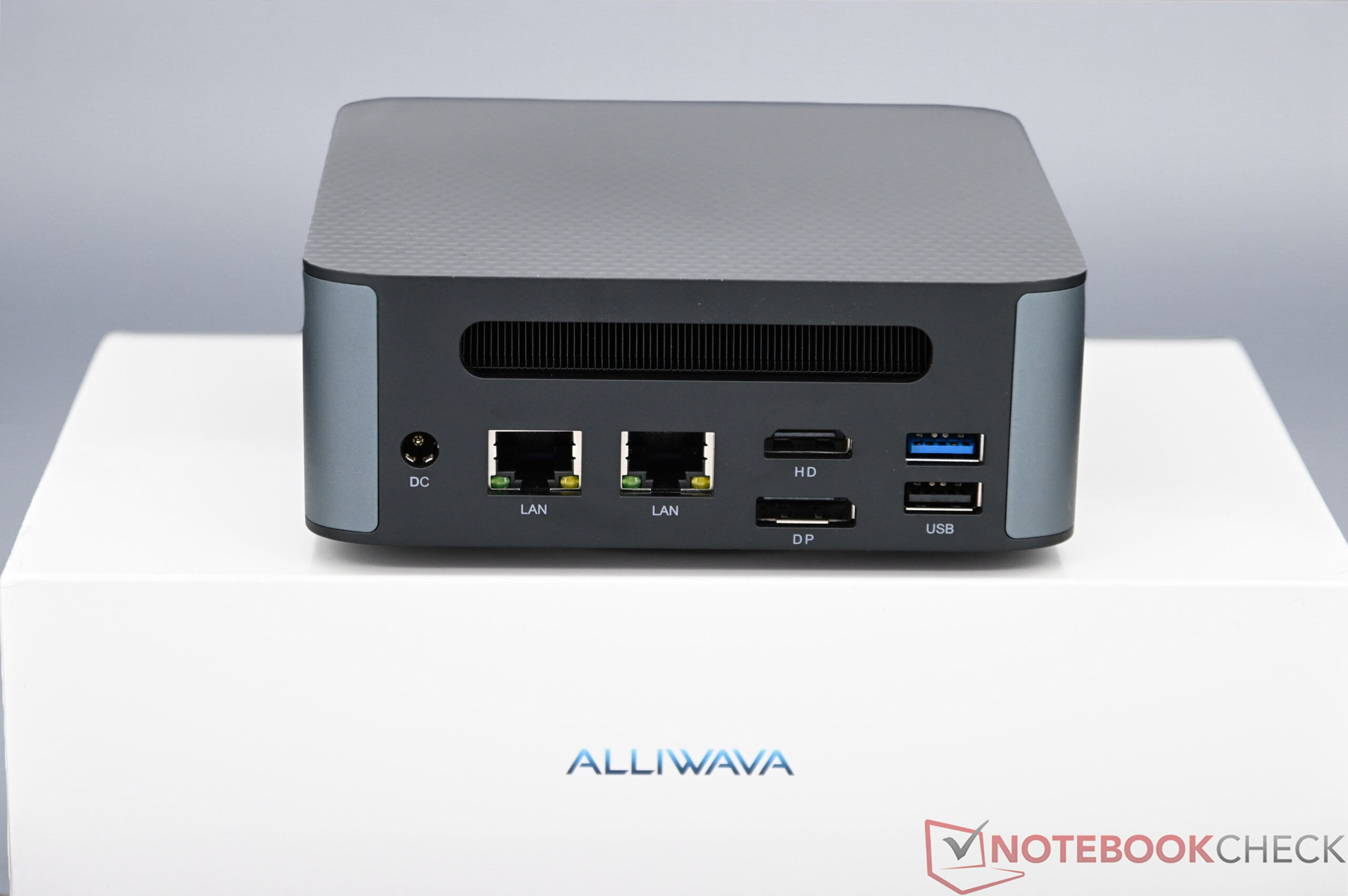 O Alliwava H90 Pro vem em uma caixa de alumínio de alta qualidade com dimensões compactas e peso de cerca de 500 gramas. Enquanto a base é feita de alumínio, a tampa da caixa e a parte inferior são feitas de plástico, o que não prejudica a impressão geral de solidez e alta qualidade. As conexões estão sensivelmente distribuídas na parte frontal e traseira e oferecem uma boa seleção para o uso diário no escritório ou no ambiente doméstico. Entretanto, as interfaces modernas, como USB4 ou OCuLink, devem ser dispensadas. Mesmo assim, o Alliwava H90 Pro pode controlar até três monitores simultaneamente. Seu equipamento de rede com duas portas LAN de 2,5 gigabits e WLAN rápida também estão entre os pontos fortes desse mini PC compacto do Extremo Oriente.