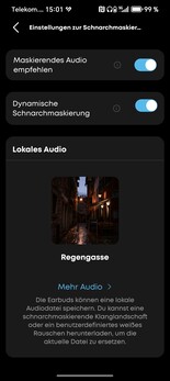 Os fones de ouvido têm alguns pontos fracos quando se trata de chamadas telefônicas. Em ambientes silenciosos, a qualidade é satisfatória, mas o ruído de fundo pode ser ouvido sem filtragem durante as conversas. A propósito, a função de chamada está desativada nas configurações de fábrica e deve ser ativada primeiro por meio do aplicativo.