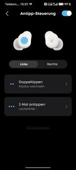 Os fones de ouvido são operados principalmente por meio do aplicativo, pois as superfícies de toque são deliberadamente pequenas e menos sensíveis para evitar entradas acidentais durante o sono. Essa é uma boa ideia, mas leva algum tempo para o senhor se acostumar. No uso diário, comandos como reproduzir/pausar funcionam de forma confiável, e a alternância entre os modos ANC e de suspensão também é descomplicada.