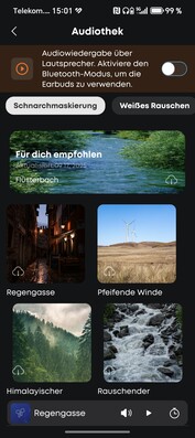 Dependendo do modo, a duração da bateria é de 5 a 8 horas por carga. No modo de som de sono puro sem Bluetooth, os fones de ouvido alcançam os tempos de execução mais longos, pois não é necessário fazer streaming. Com ANC e Bluetooth, o tempo de reprodução diminui um pouco, mas ainda é suficiente para uma noite normal. Em nosso teste, isso significou que, após uma noite (aprox. 8 horas), eles ainda tinham 20% de carga restante.