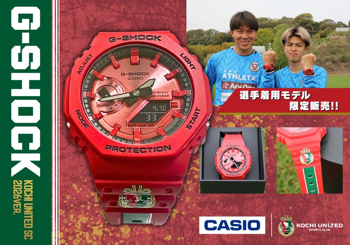 O relógio Casio G-Shock Kochi United SC 2026 será lançado no Japão em 26 de abril, ao preço de ¥22.000 (~$139). Ele estará disponível exclusivamente para portadores de ingressos para a temporada e membros do clube, e apenas 80 unidades foram produzidas. Não se sabe se mais estoque poderá ser lançado em uma data posterior.