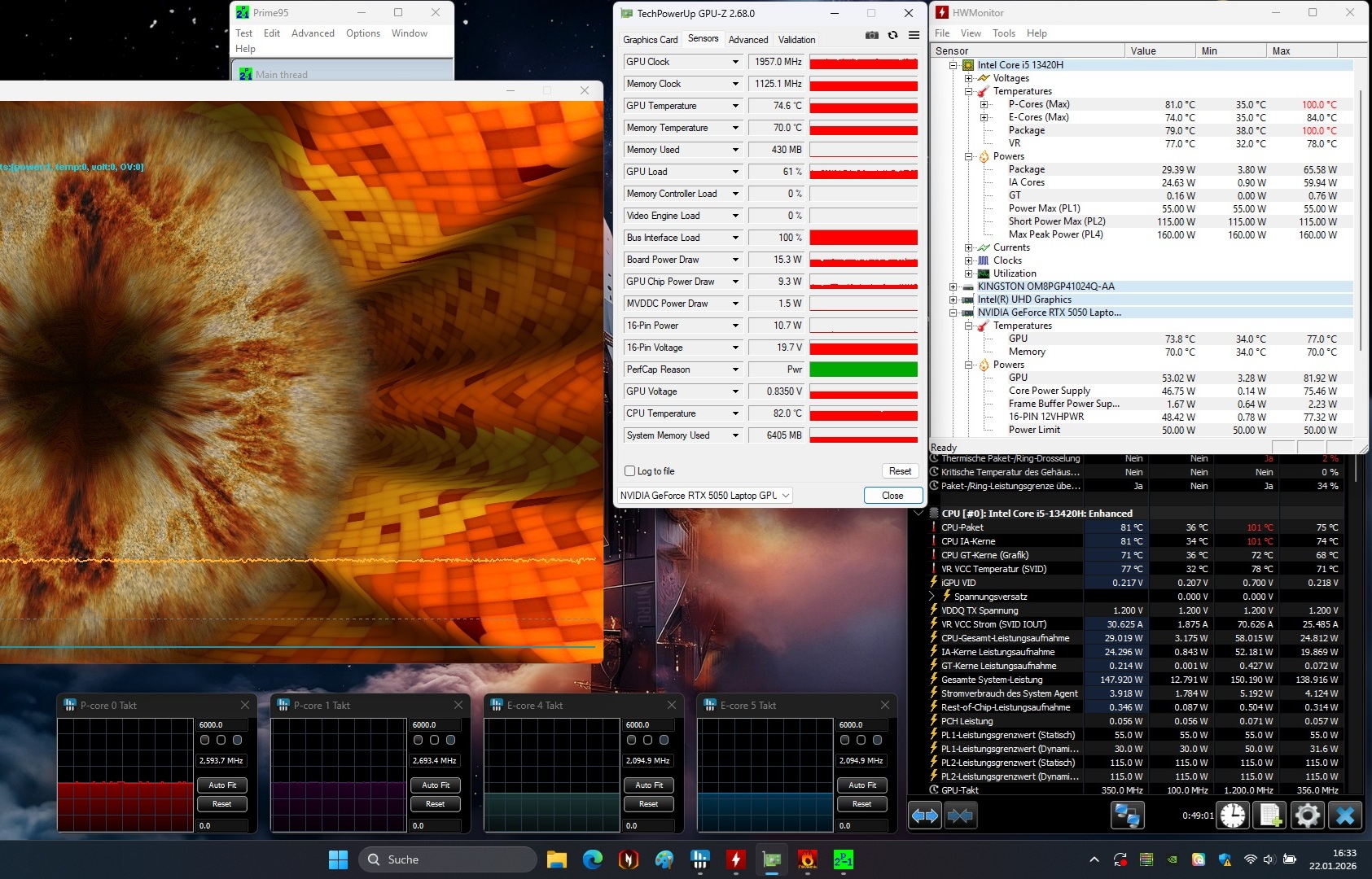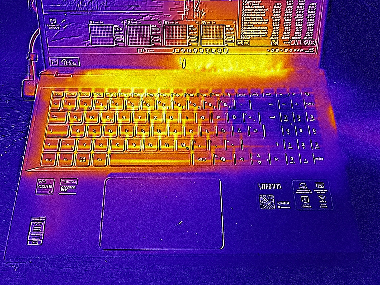 As temperaturas estão de acordo com as expectativas para um laptop RTX 5050. Em operação inativa, o chassi permanece agradavelmente frio.