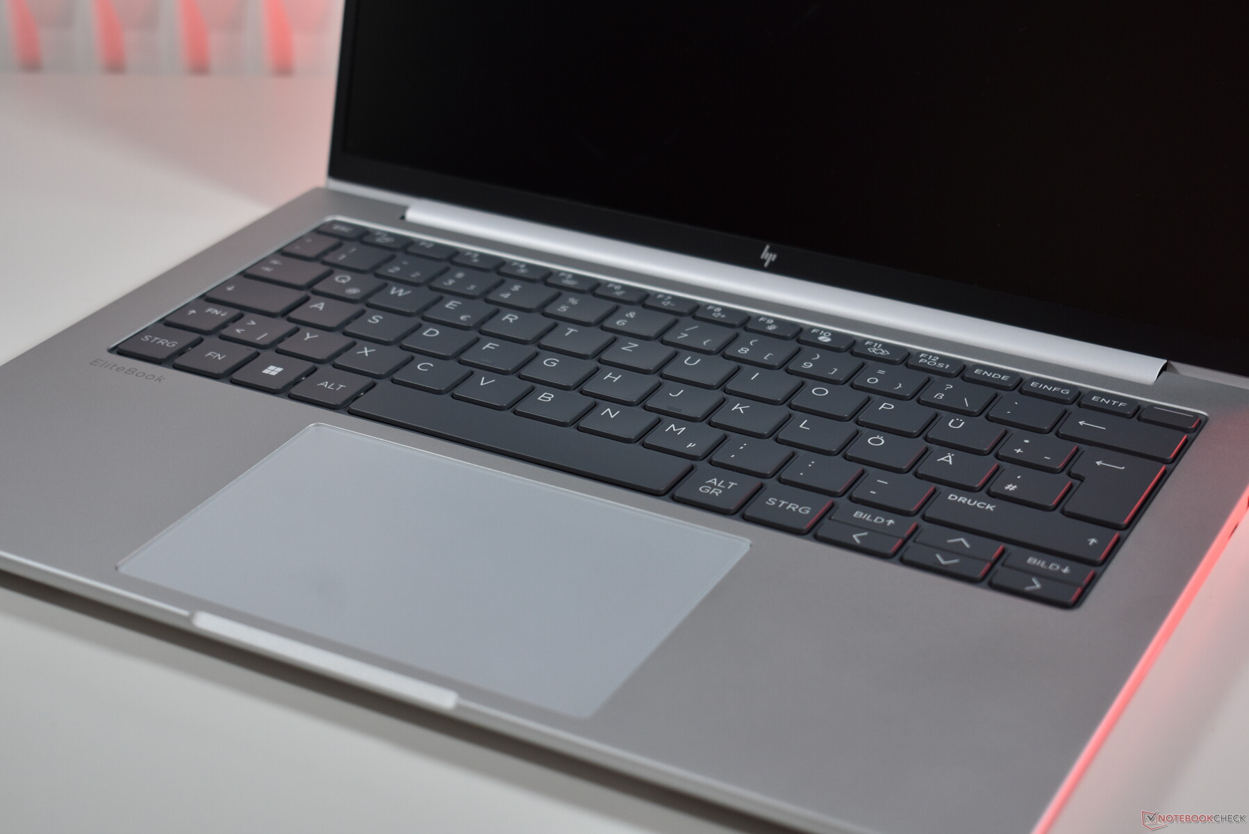 O touchpad de vidro do laptop HP EliteBook mede 12,5 x 8 cm, um tamanho adequado para um laptop de 14 polegadas. É um touchpad muito bom, com uma superfície de alta qualidade e boa qualidade mecânica, embora um touchpad háptico que pudesse ser clicado em qualquer lugar fosse ainda melhor - esse clickpad de placa de mergulho só pode ser clicado na metade inferior.