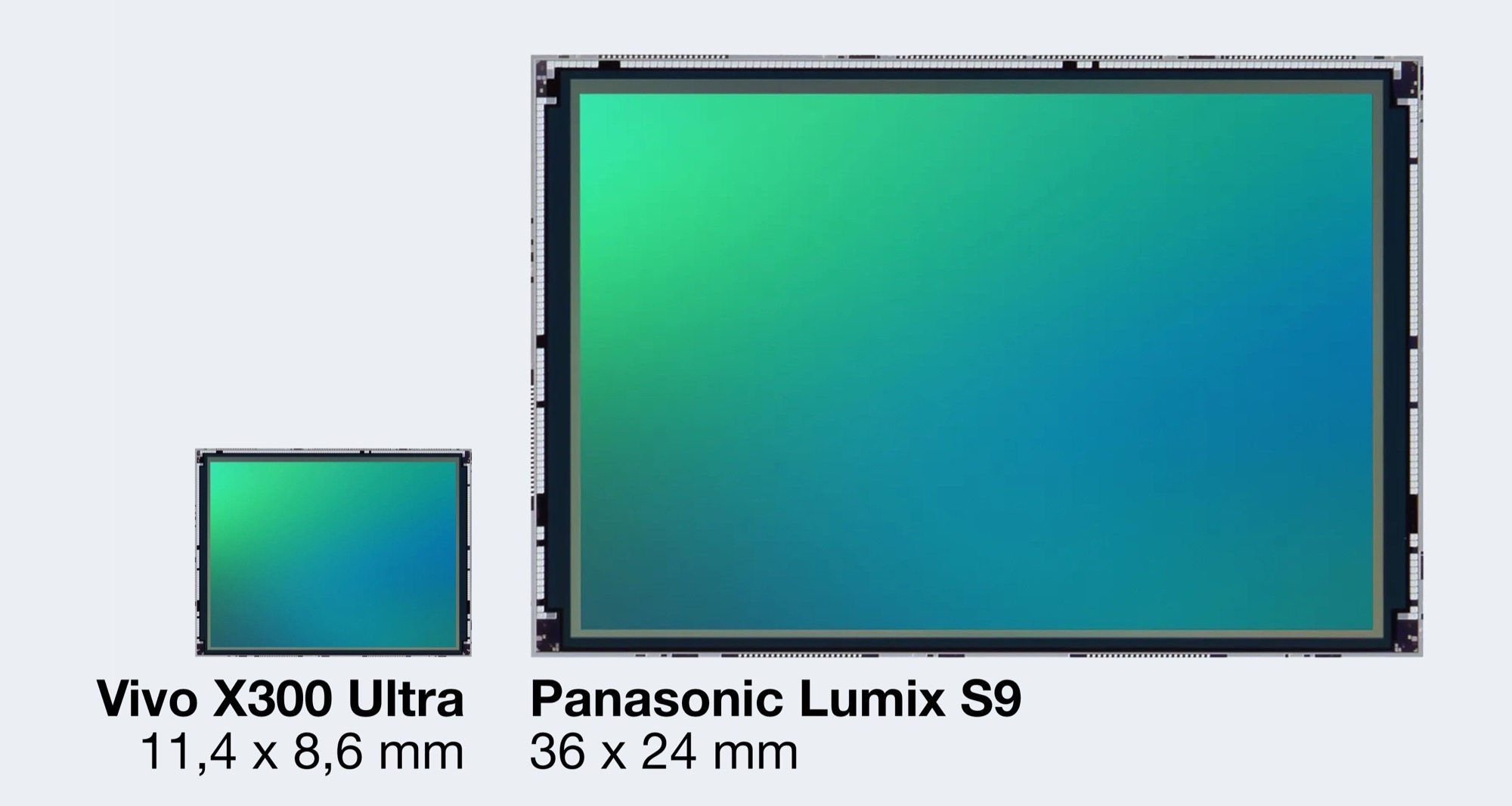 Por esse preço, a Vivo inclui uma câmera principal de 200 MP f/1.9 com sensor de 1/1.12 polegadas, uma câmera teleobjetiva periscópio de 200 MP f/2.7 com sensor de 1/1.4 polegadas e uma lente ultrawide de 50 MP f/2.0 com sensor de 1/1.28 polegadas. Embora esses sensores sejam relativamente grandes para os padrões dos smartphones, um sensor full-frame ainda é cerca de nove vezes maior que o sensor de 1/1,12 polegada usado na câmera principal do Vivo X300 Ultra, conforme ilustrado pela comparação de tamanho abaixo