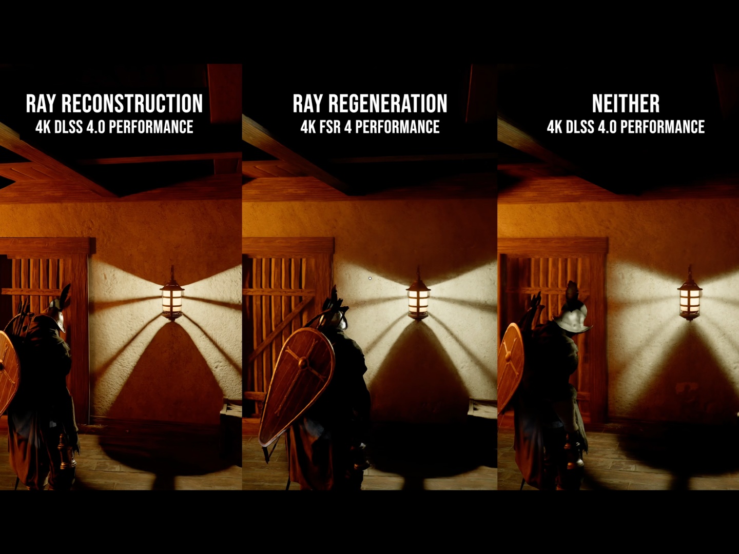 Eles descobriram que aumentar a iluminação para a configuração "Max" piora o ruído, por isso recomendam "Cinematic" ou "Ultra". É interessante notar que o DLSS 4.0 funciona melhor do que o DLSS 4.5 na redução do ruído. Em alguns casos, o upscaling usando o DLSS introduz mais ruído, pois a contagem de amostras para iluminação depende da resolução de renderização e não da resolução de saída, de acordo com o Hardware Unboxed. É melhor executar o jogo na resolução nativa ou próxima à nativa usando o modo DLAA ou DLSS Quality.